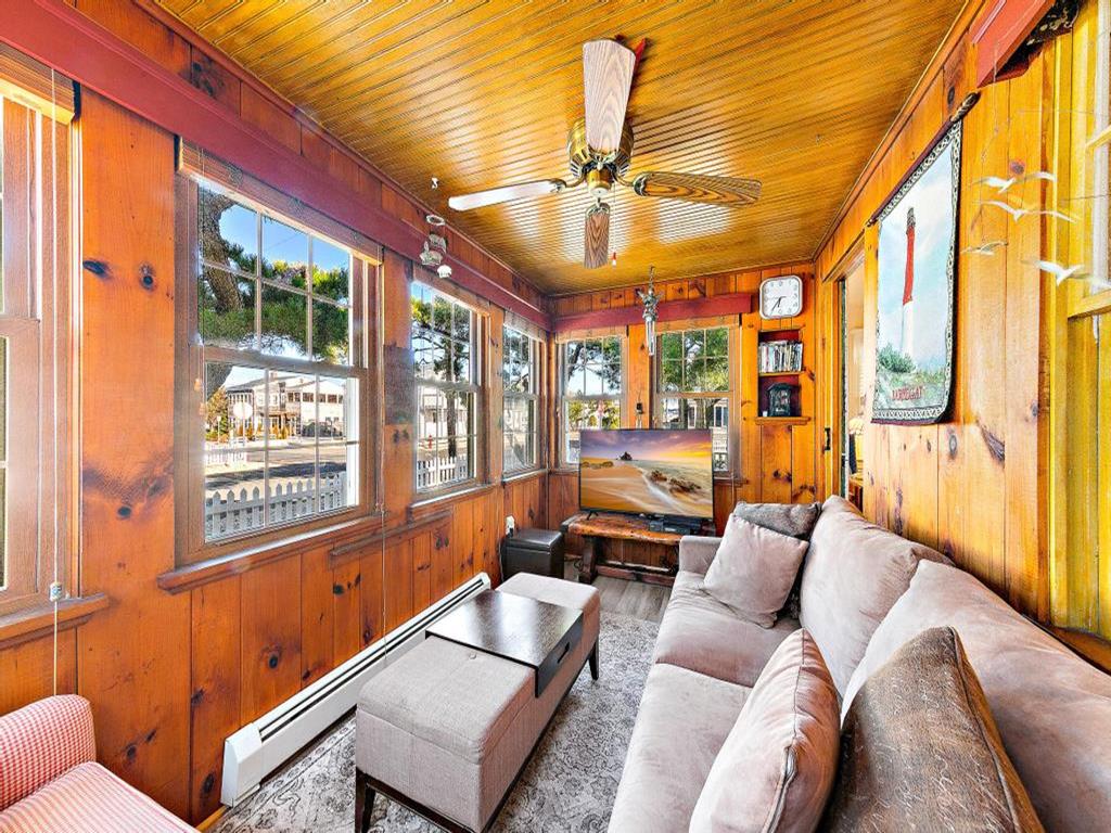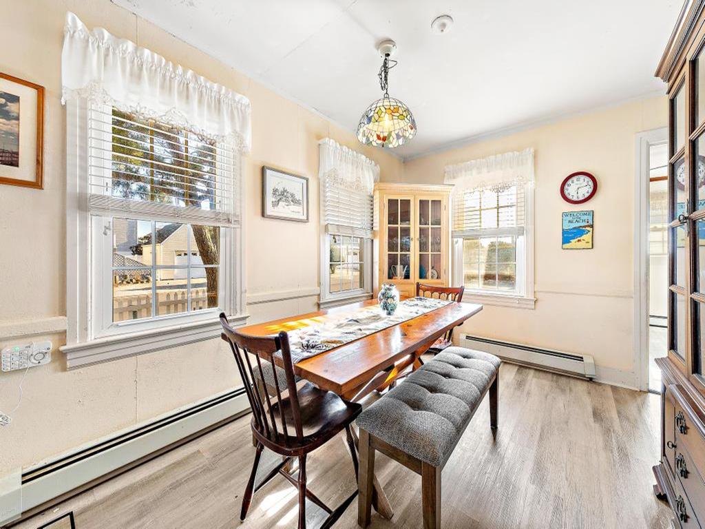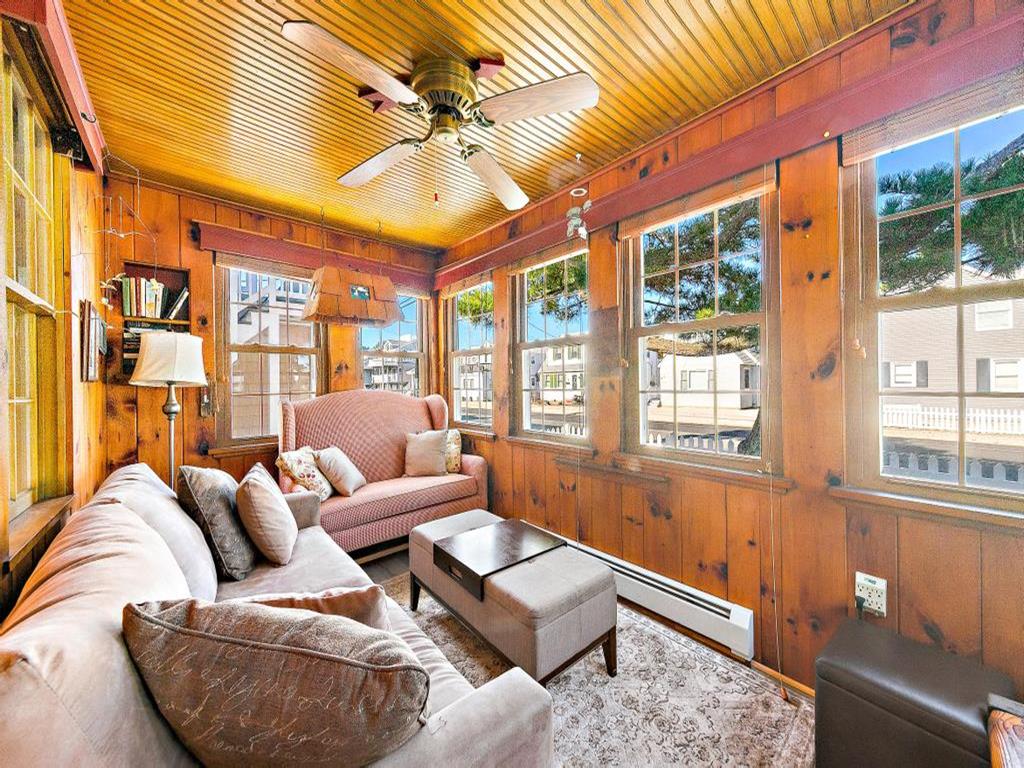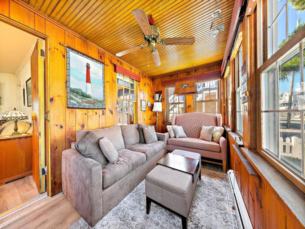 OCEAN BLOCK FAMILY CAPE COD Steps to the beach with an oversized fenced yard and huge driveway perfect for parking cars or safe family fun. Full kitchen with updated SS appliances, dining room, living room, and den on the first floor allowing plenty of room for families to gather. Fire up the grill for meals enjoyed on the outdoor patio shaded by a retractable awning, outdoor furniture includes dining table, chairs and umbrella. Full size garage to store all your vacation gear. But pack lightly because everything you need for a day at the beach is provided: 6 badges, 6 beach chairs, a rolling beach cooler, and a wheeled cart to carry towels and toys. Vacation in a home that is a part of LBI history. This charming, updated cottage is recognized as the first Cape Cod built on the island in 1933! Three generations later the Burnet family still own and vacation in this timeless property. Pillows, blankets and comforters provided.