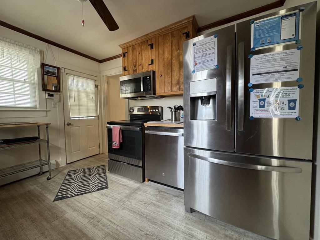 OCEAN BLOCK FAMILY CAPE COD Steps to the beach with an oversized fenced yard and huge driveway perfect for parking cars or safe family fun. Full kitchen with updated SS appliances, dining room, living room, and den on the first floor allowing plenty of room for families to gather. Fire up the grill for meals enjoyed on the outdoor patio shaded by a retractable awning, outdoor furniture includes dining table, chairs and umbrella. Full size garage to store all your vacation gear. But pack lightly because everything you need for a day at the beach is provided: 6 badges, 6 beach chairs, a rolling beach cooler, and a wheeled cart to carry towels and toys. Vacation in a home that is a part of LBI history. This charming, updated cottage is recognized as the first Cape Cod built on the island in 1933! Three generations later the Burnet family still own and vacation in this timeless property. Pillows, blankets and comforters provided.