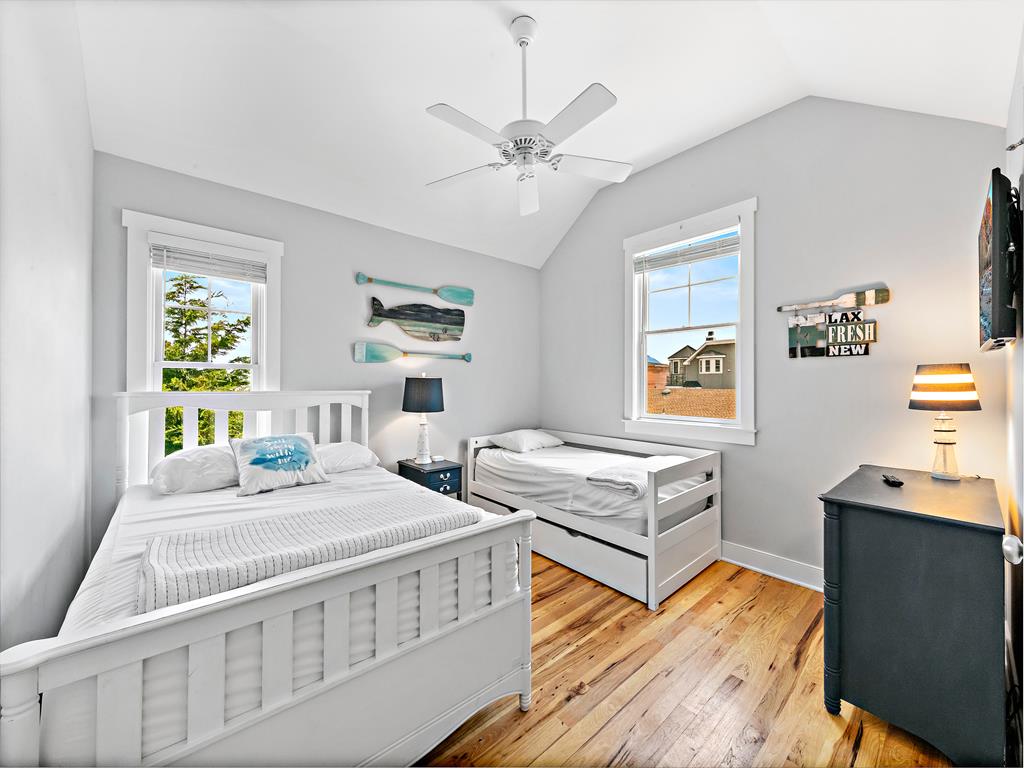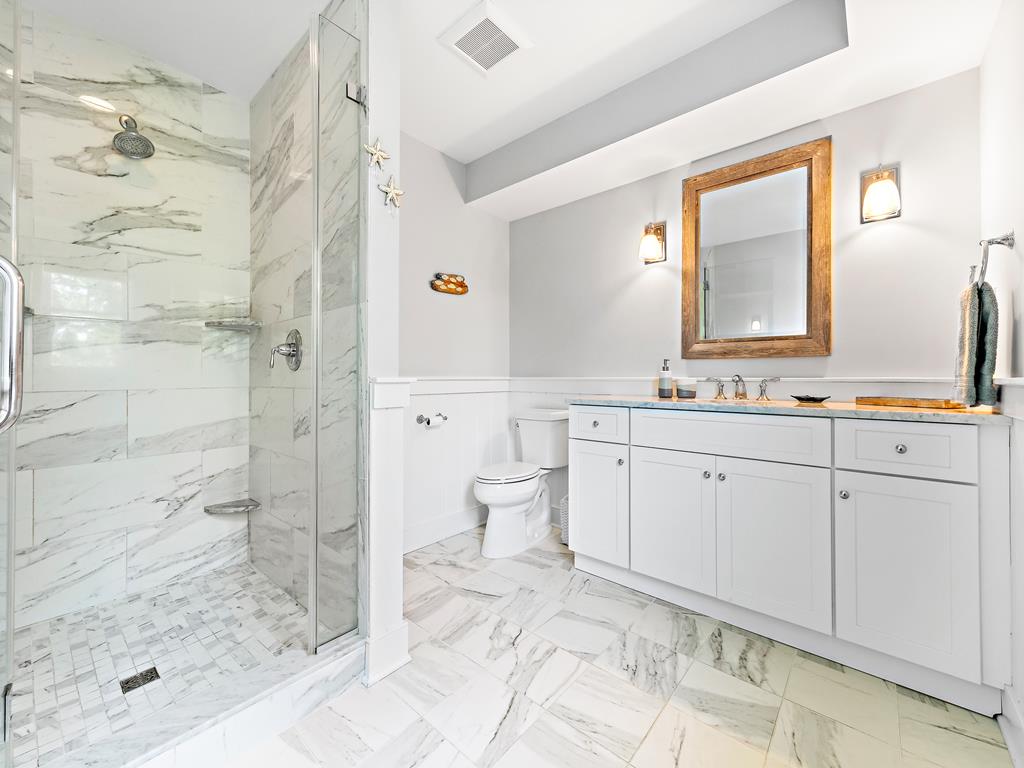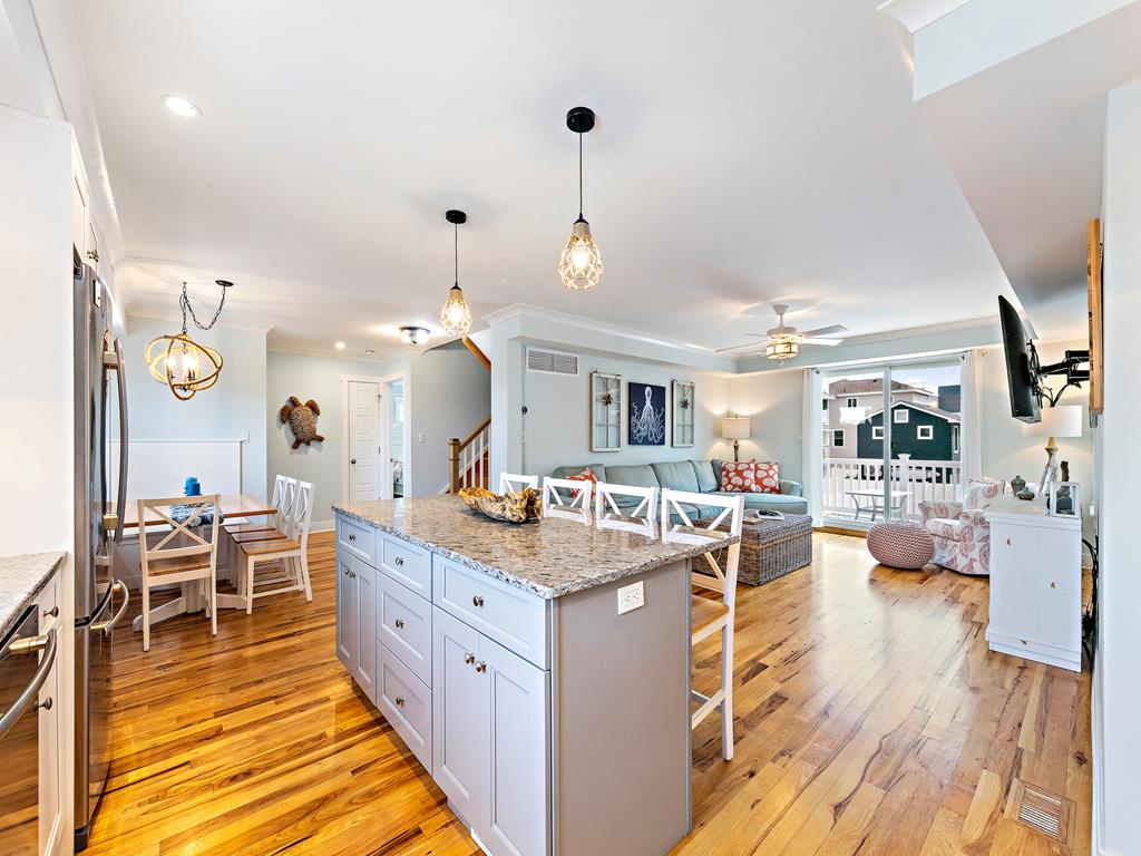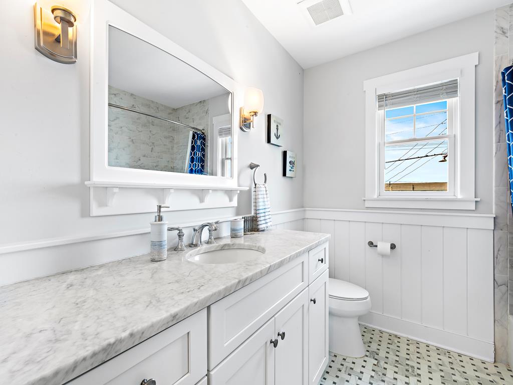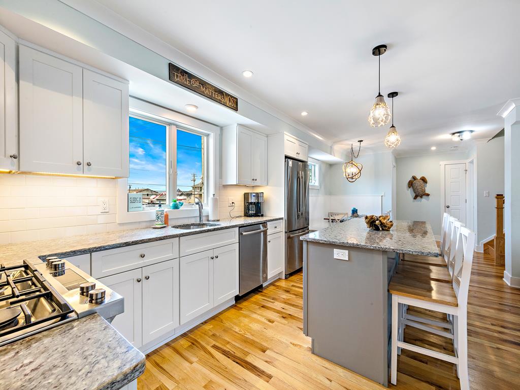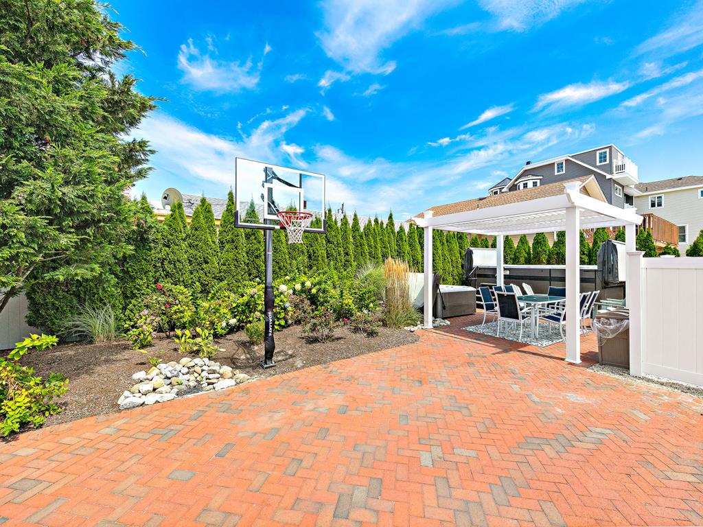 Enjoy your LBI summer vacation in a perfectly located, spacious, home in Beach Haven. This Beach Haven home will comfortably sleep and accommodate 16, with 4 bedrooms, 2.5 baths plus an outdoor shower. There are 6 brand new high definition Smart TV’s, and Wi-Fi throughout. Cable also included in the Master Bedroom, both upstairs and downstairs dens. Ceiling fans included in every room. The home is equipped with two zones of AC, both running on NEST thermostats. All bedroom closets contain beautiful closet systems with plenty of storage space – drawers, hangers, shelves, etc. The house is an oasis and contains the best of both worlds – proximity to the heart of Beach Haven – with all the privacy that comes with a home on a cul-de-sac. The front of the house features a spacious, fenced in, private courtyard, with a two-car garage and your own basketball hoop, soccer nets, patio table/furniture, gas BBQ, large hot tub and private access to N. Bay Blvd. We provide 7 bicycles, 8 beach passes, and 8 high quality beach chairs with the beach only steps away from the house, and a hot tub to enjoy when you return from the beach. There is a medium sized deck – 6 ft. x 15 ft. - that extends out from the 1st floor den overlooking the courtyard, where you can relax at the end of the day with a glass of wine – or whatever libation you prefer – and bask in the glow of the memories you made that day. Inside the garage is a ping pong table for you and the kids to enjoy throughout the week, which will not block either of the parking spaces. In addition to the in-garage parking, there are 2 outside spots available as well in front of the house. You can access the main interior of the house from the garage as well. Please refer to 136540 when inquiring about this lovely home.