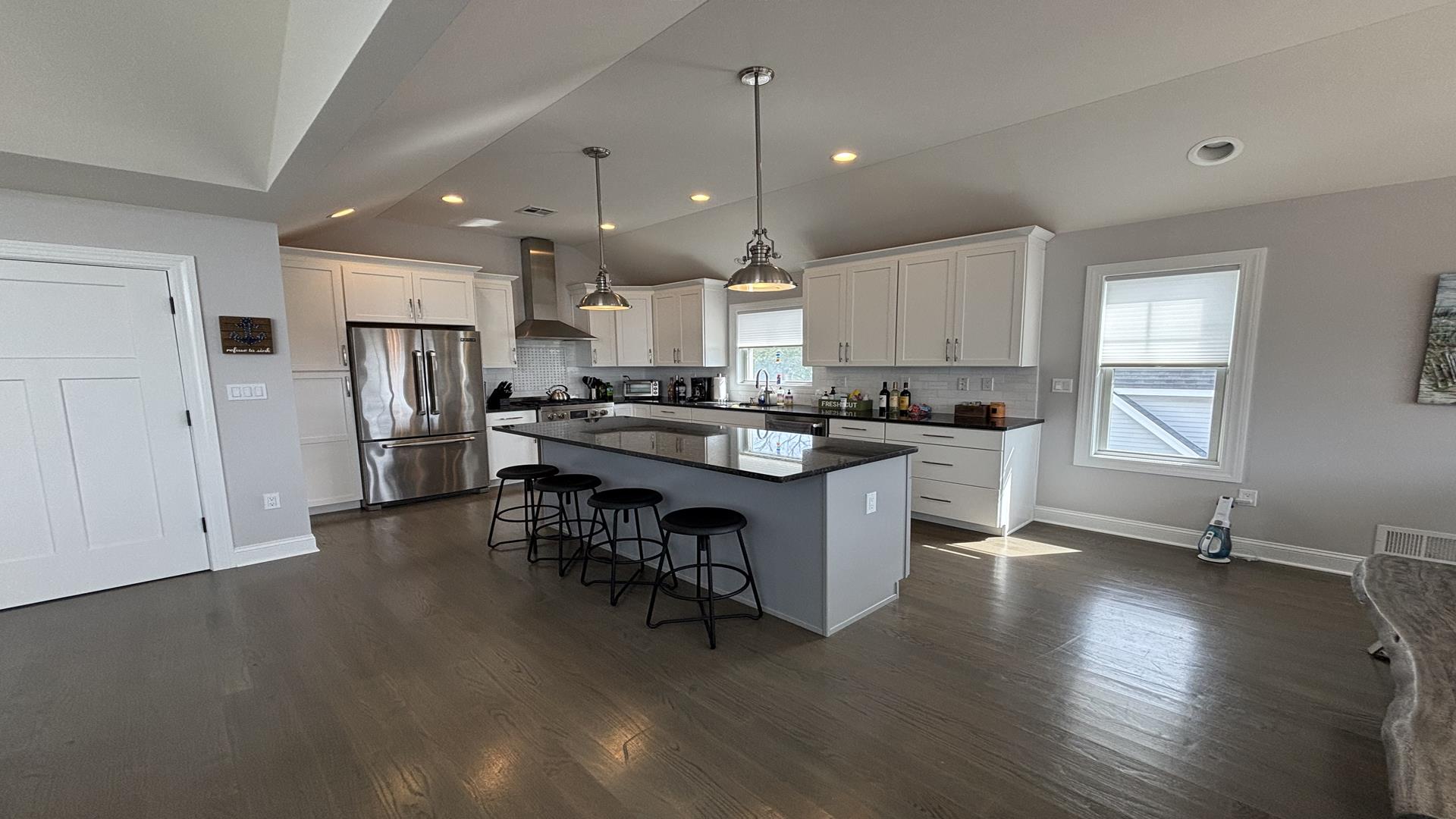 Beautiful brand new home on the bay side in Surf City. Close to the bay park and bay. Walk into this home on the entry level and go up a few stairs and you are in the spacious den, walk down the hall into the 3 bedrooms including a junior master and 2 others with queens. Upstairs there is the master suite along with an open floor plan kitchen, living and dining areas. Having trouble getting up and down the stairs - there is an elevator - please no unattended children. The back yard has ample seating and a fire pit, also there are 2 outside enclosed showers, instead of an iron there is a steamer for your convenience. Pillows and quils provided. Please refer to 139200 when inquiring about this beautiful home.