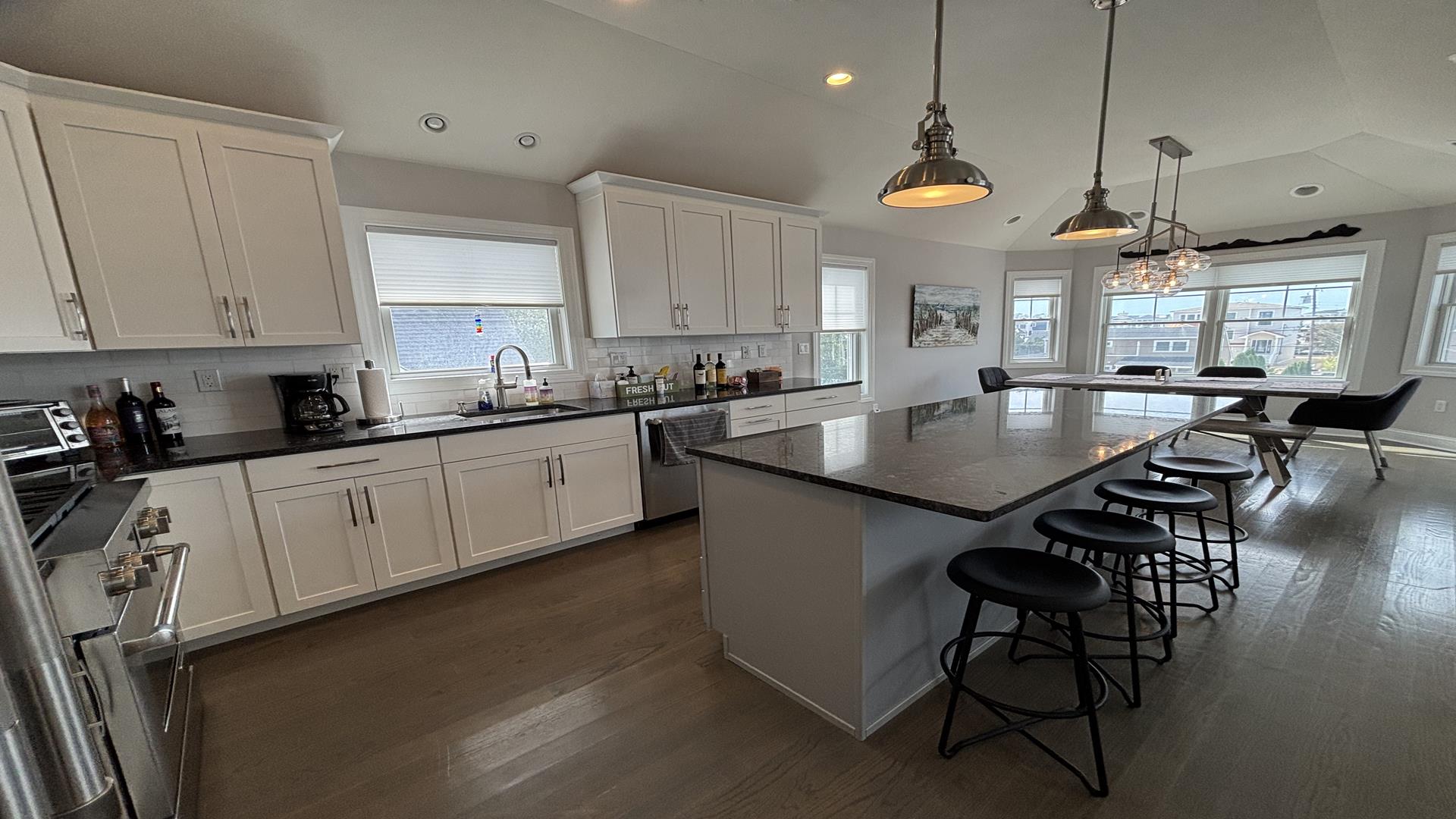 Beautiful brand new home on the bay side in Surf City. Close to the bay park and bay. Walk into this home on the entry level and go up a few stairs and you are in the spacious den, walk down the hall into the 3 bedrooms including a junior master and 2 others with queens. Upstairs there is the master suite along with an open floor plan kitchen, living and dining areas. Having trouble getting up and down the stairs - there is an elevator - please no unattended children. The back yard has ample seating and a fire pit, also there are 2 outside enclosed showers, instead of an iron there is a steamer for your convenience. Pillows and quils provided. Please refer to 139200 when inquiring about this beautiful home.