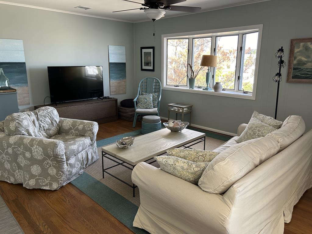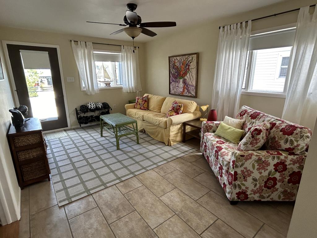 Charming Bayside Duplex in Harvey Cedars. This listing is for both floors which can be made available and accessible through an interior lock off stairwell. Each floor features a full kitchen, dining area, living room, two bedrooms and a full bathroom. The lock off stair well on the first floor has an additional sitting/sleeping area. Deck off the second floor has partial bay views and dining table. Close to bay access at the end of the block and beach access at East Essex.