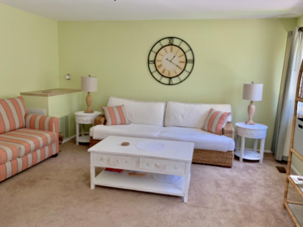 Immaculate townhouse located in the Ocean Club in Brant Beach. Queen bedroom and full bath on the first floor, up a few steps you will find a updated eat in kitchen, a few more steps is the large living room with sliders to a deck and roof top deck. A few steps more there is a queen bedroom with a set of bunk beds and a bathroom with shower. This is a corner unit, gas grill , community pool, and easy walk to the beach from the gate in the back. Parking for 2 cars only. Owner provides pillows and blankets for tenant use.