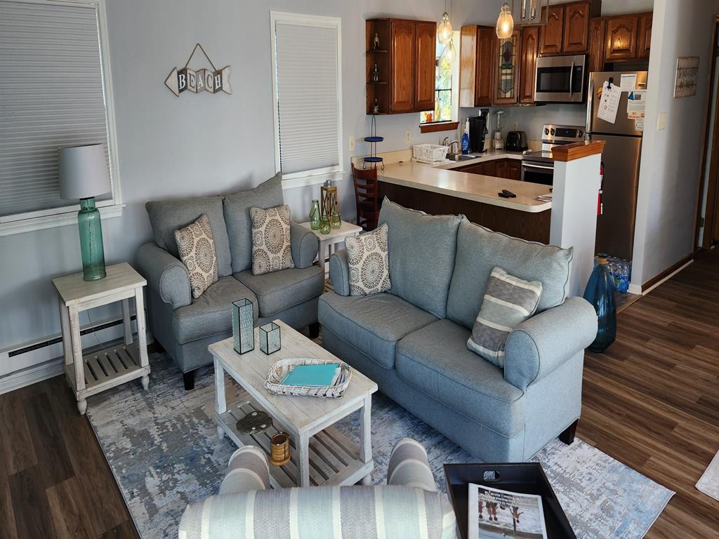 3 bedroom raised ranch with two full bathrooms. Views of Kinsey Cove from all living areas and two bedrooms. Deck with outdoor dining table overlooks the cove as well. 1 boat slip provided with rental. Two others are rented to neighbors.