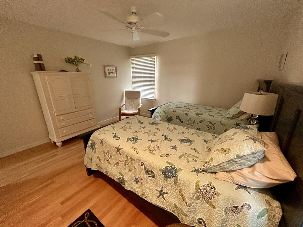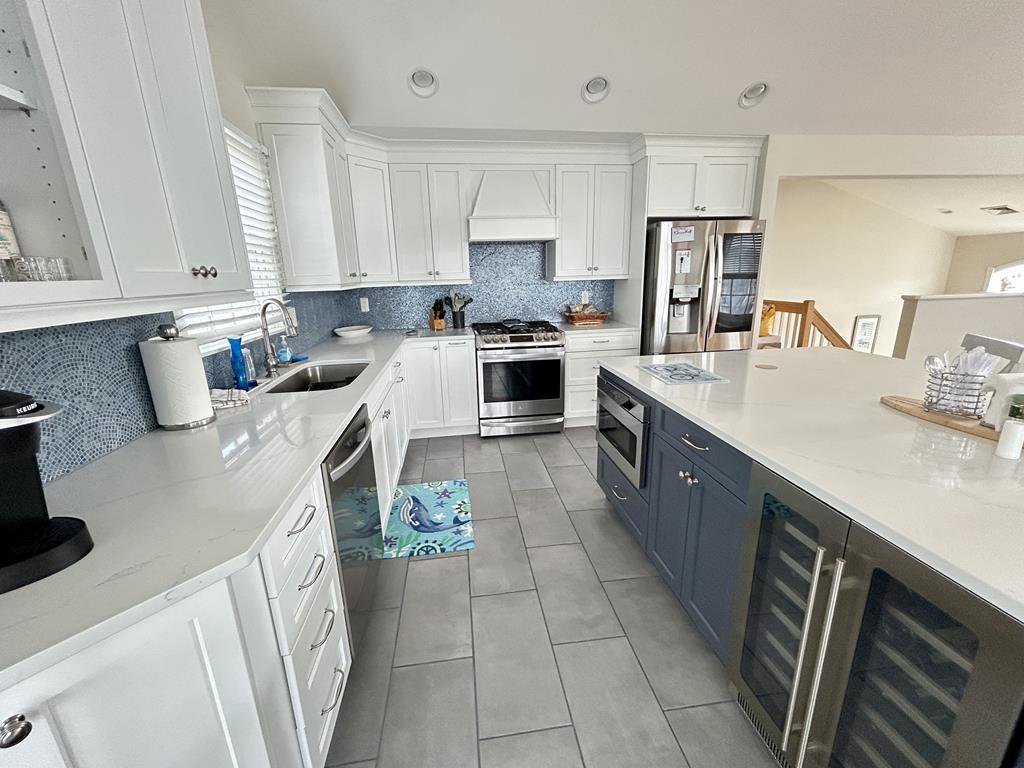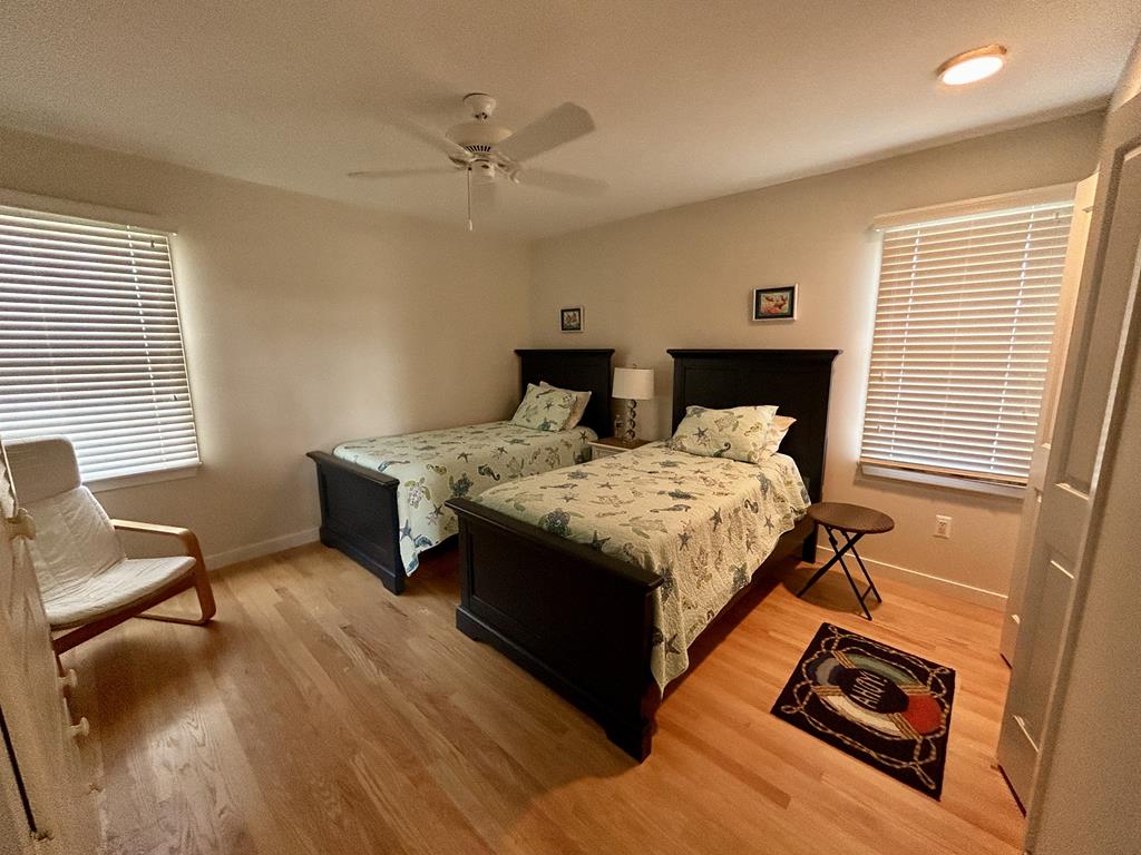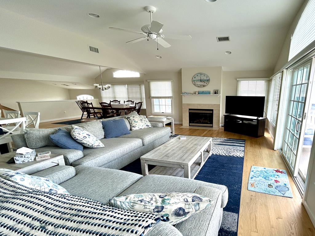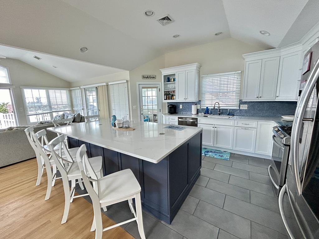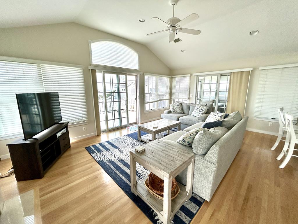 Great Bay views from this beautiful home on a private lane in North Beach. Enjoy the short walk to private beach access at #1111. Bay access is just a short walk. Open floor plan and renovated kitchen with large island. Primary bedroom on main level. 3 other bedrooms on first floor as well as additional family room. Lots of deck space on both levels with covered deck off the first floor. Screened in eating area off the kitchen with large dining table. No smoking anywhere on property.. No parking on easement. 6 Beach passes and beach chairs provided, must be replaced if lost or security will be deducted. Tenant to supply linens , towels and pillows. No pets - loss of security deposit if found to have pet on property. Not a pet free property. Phone on honor system, no long distance call or tenant will be billed.