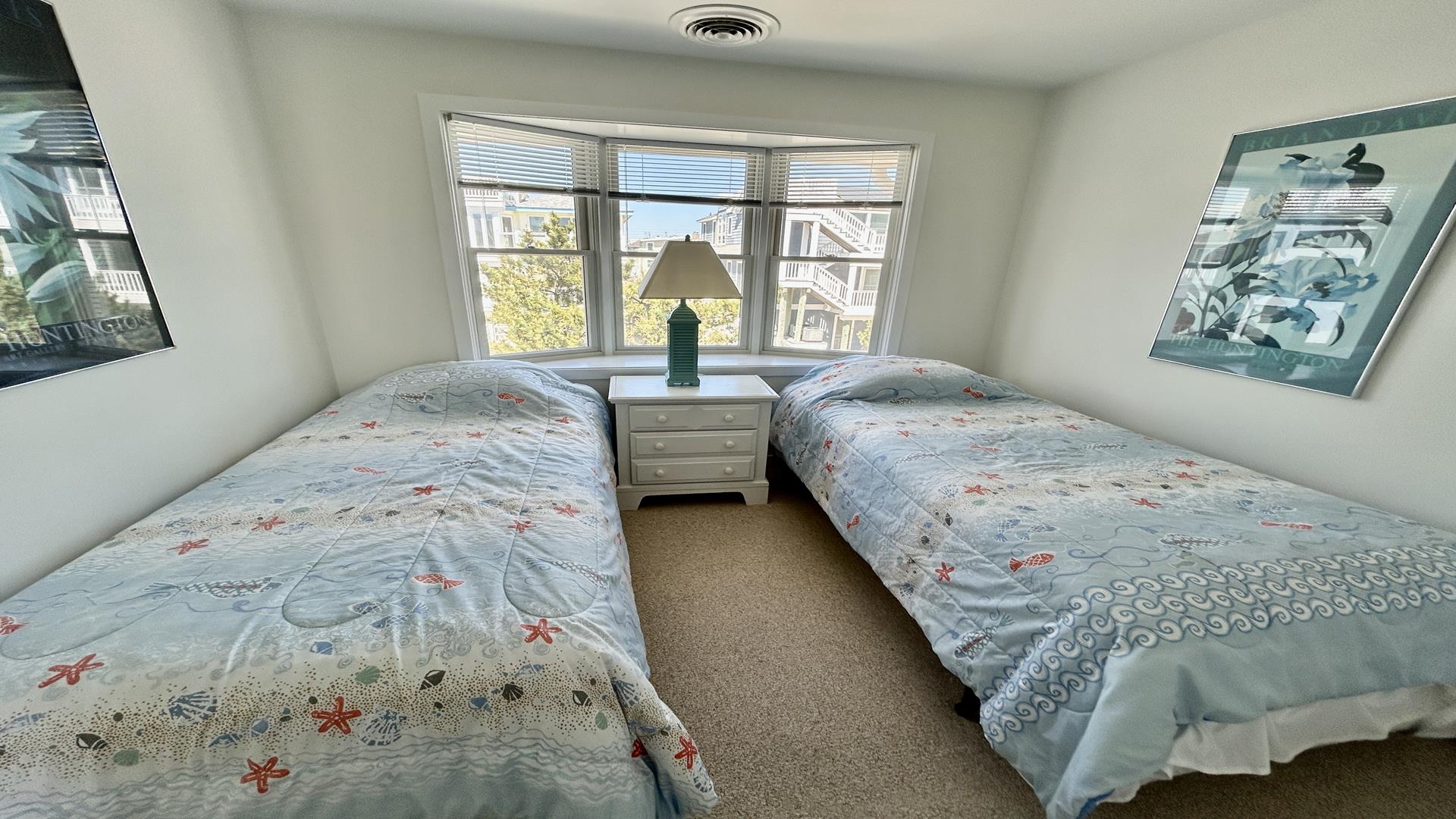 Ocean and Bay views! Enjoy the views from the newly remodeled deck, catch the sunrise and the sunset from the same place. Great 3 bedroom, 1.5 bath unit. One house to the beach in Harvey Cedars. Primary bedroom has a queen bed and a half bath, 2nd bedroom has a full bed, 3rd bedroom has 2 singles. Recently renovated hall bath has a tub. Outside showers gas grill, 6 beach badges provided. Close to bay beach (one block over). Labor Day weekend is available as an add on the the prior week or on it\'s own - rental thru Tuesday!