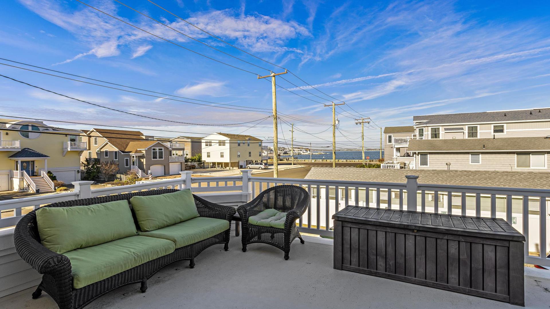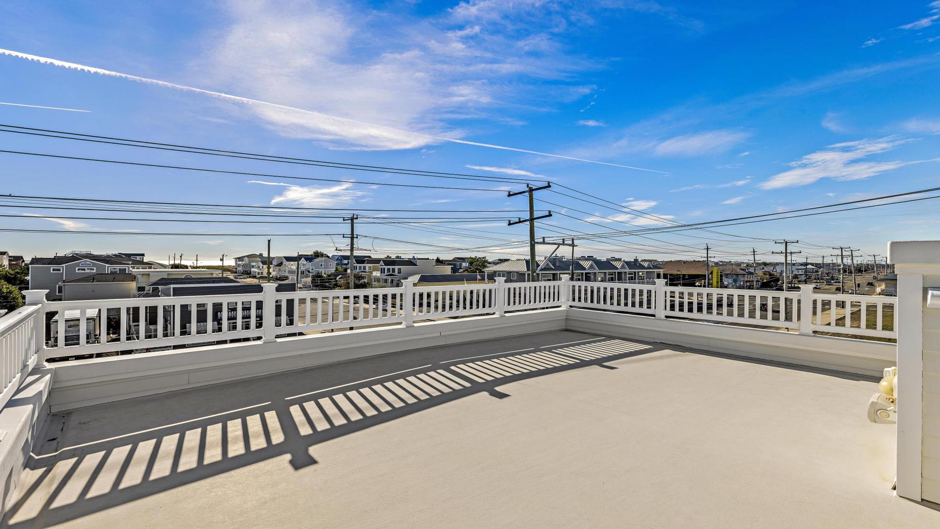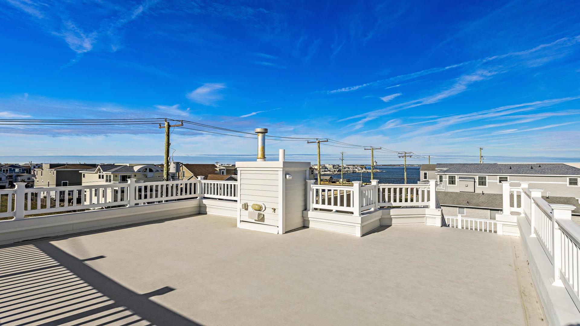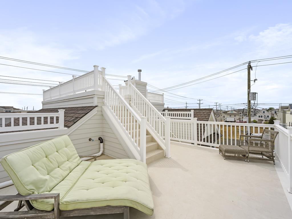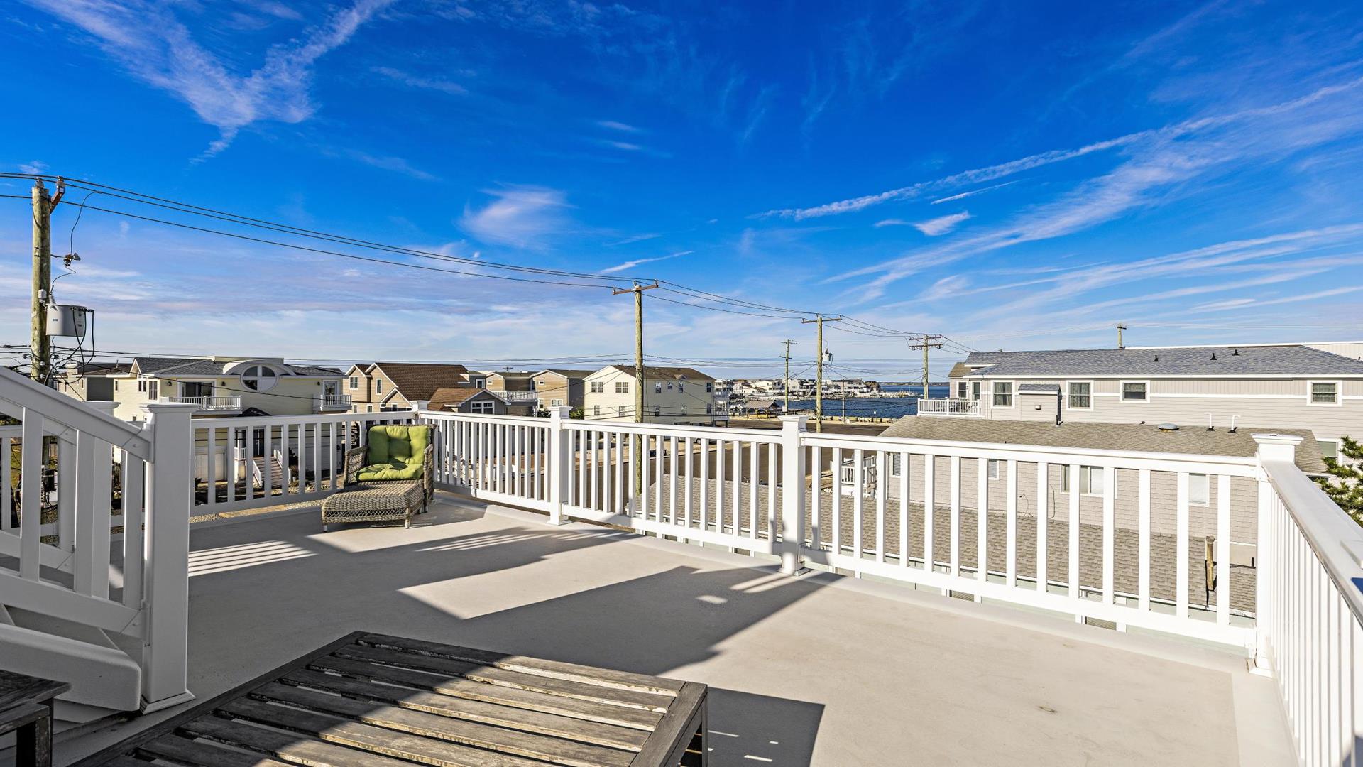 Welcome to your dream vacation rental in Ship Bottom; Upper-level Penthouse located on the Bay Side with stunning views of the bay and ocean. This newly renovated property sleeps 8 comfortably and is only 8 houses to the beach and 3 houses to the fishing pier perfect for that summer living. This spacious property features 4 bedrooms, 2 full bathrooms, and 1 half bathroom, making it the perfect retreat for families or groups of friends. As you step inside, you\'ll be greeted by a beautifully furnished interior with all the amenities you could need for a relaxing stay. The kitchen is fully equipped with a dishwasher, microwave, disposal, coffee maker, toaster oven, blender, stove, full-size refrigerator, oven, and kitchen island. Enjoy meals together at the dining table with seating for 8 guests or take the gathering outside to one of the 3 decks perfect for dining and lounging. Sip a coffee in the morning or a cocktail later in the day on the roof top deck and enjoy the panoramic views of LBI\'s beaches and bays. It truly doesn\'t get better than this. After a day at the beach, rinse off in the convenient outside shower and retreat to the comfortable living room with smart TV before firing up the gas grill outside. After dinner, you can enjoy the fire pit and ocean air This property was furnished with comfort in mind and includes cable TV, Blu-Ray player, high-speed internet, central AC, ceiling fans, washer, dryer, pillows, blankets, beach badges, beach chairs and bikes, everything you would expect in an upscale property. There is also off-street parking for 4 vehicles. Tenant responsible for linens including sheets and towels. Don\'t miss out on this incredible vacation rental in Ship Bottom as it does not disappoint!