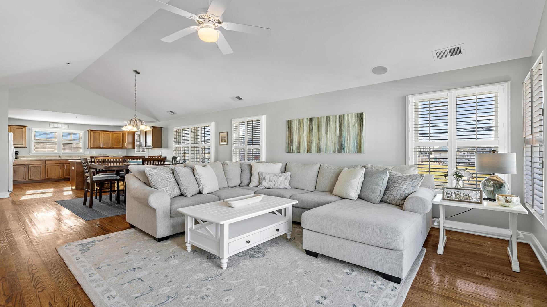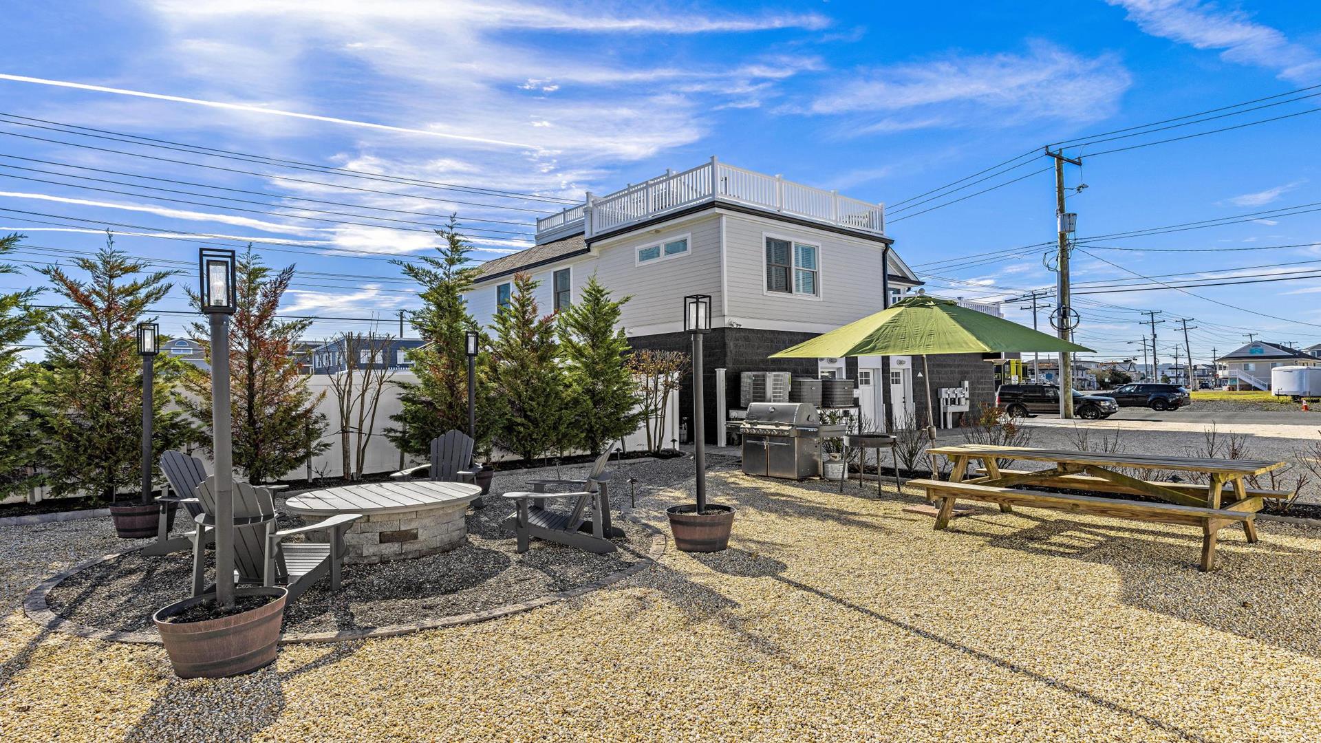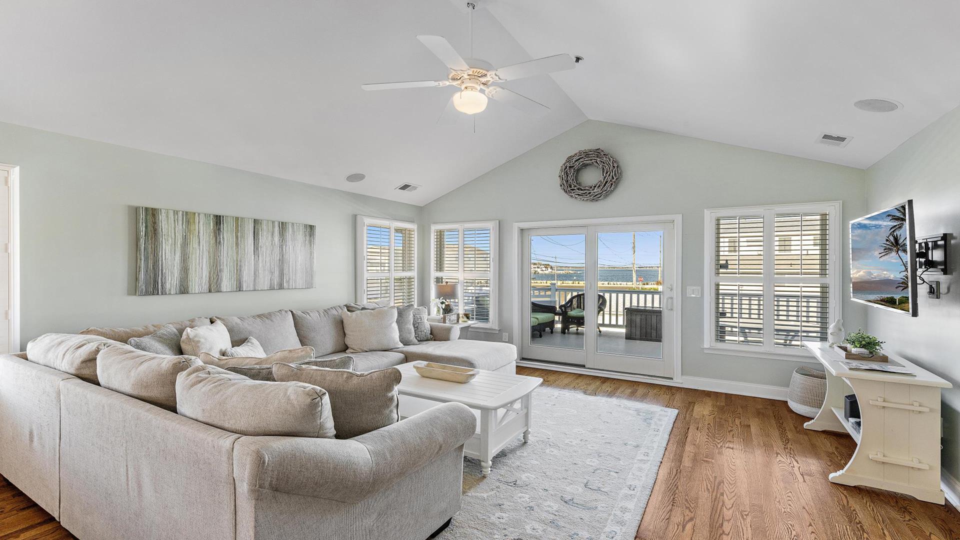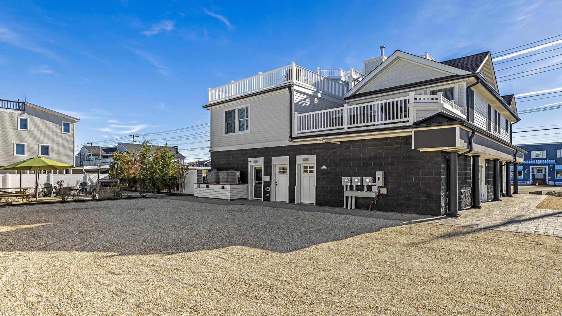 Welcome to your dream vacation rental in Ship Bottom; Upper-level Penthouse located on the Bay Side with stunning views of the bay and ocean. This newly renovated property sleeps 8 comfortably and is only 8 houses to the beach and 3 houses to the fishing pier perfect for that summer living. This spacious property features 4 bedrooms, 2 full bathrooms, and 1 half bathroom, making it the perfect retreat for families or groups of friends. As you step inside, you\'ll be greeted by a beautifully furnished interior with all the amenities you could need for a relaxing stay. The kitchen is fully equipped with a dishwasher, microwave, disposal, coffee maker, toaster oven, blender, stove, full-size refrigerator, oven, and kitchen island. Enjoy meals together at the dining table with seating for 8 guests or take the gathering outside to one of the 3 decks perfect for dining and lounging. Sip a coffee in the morning or a cocktail later in the day on the roof top deck and enjoy the panoramic views of LBI\'s beaches and bays. It truly doesn\'t get better than this. After a day at the beach, rinse off in the convenient outside shower and retreat to the comfortable living room with smart TV before firing up the gas grill outside. After dinner, you can enjoy the fire pit and ocean air This property was furnished with comfort in mind and includes cable TV, Blu-Ray player, high-speed internet, central AC, ceiling fans, washer, dryer, pillows, blankets, beach badges, beach chairs and bikes, everything you would expect in an upscale property. There is also off-street parking for 4 vehicles. Tenant responsible for linens including sheets and towels. Don\'t miss out on this incredible vacation rental in Ship Bottom as it does not disappoint!