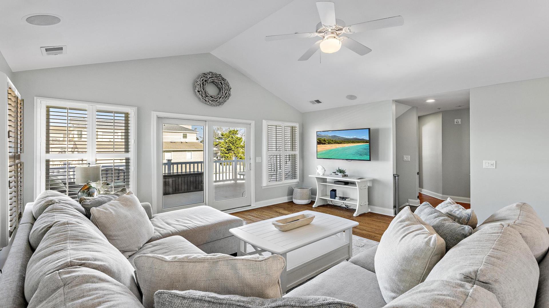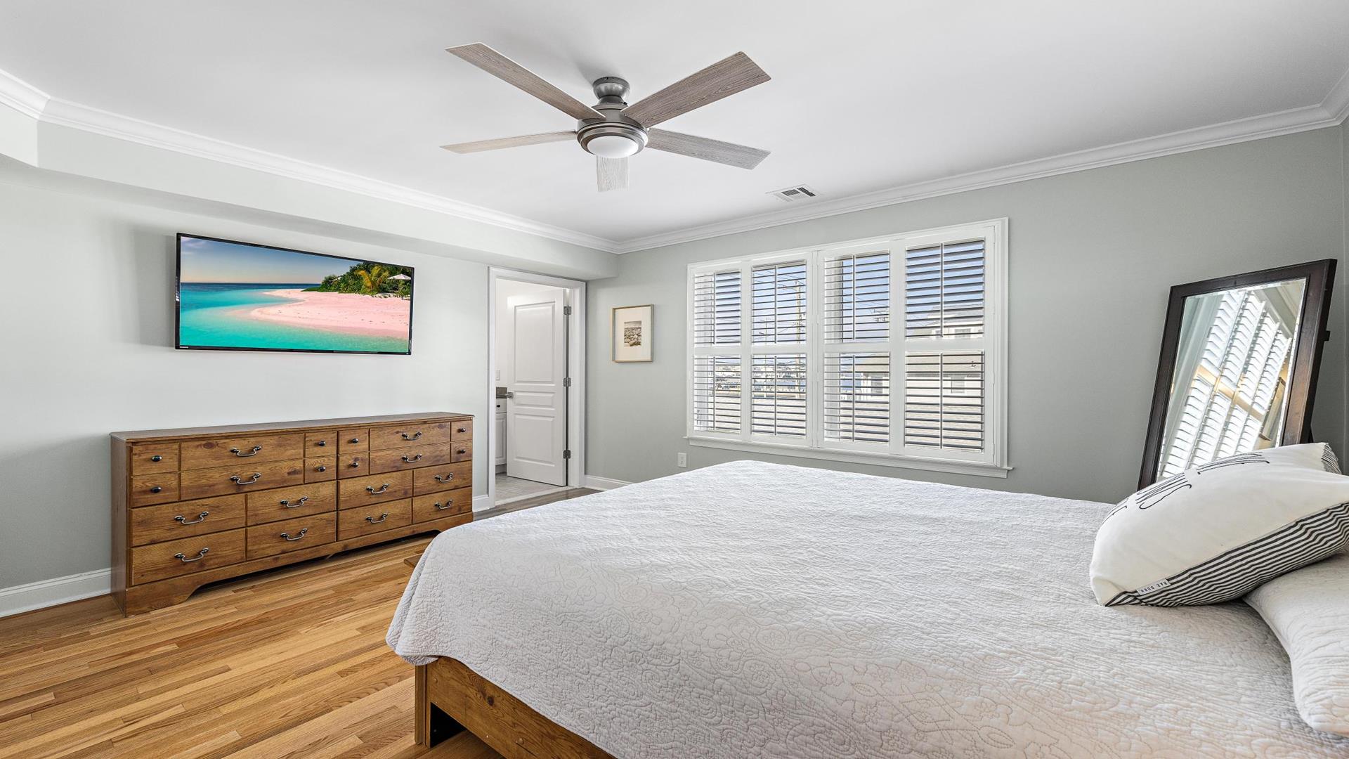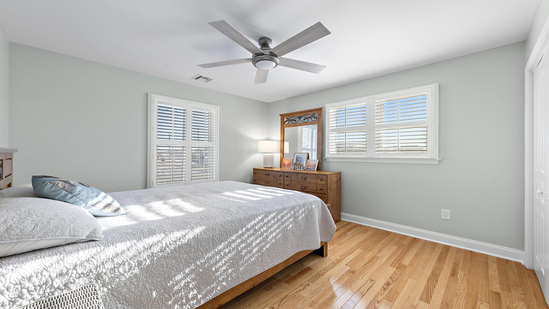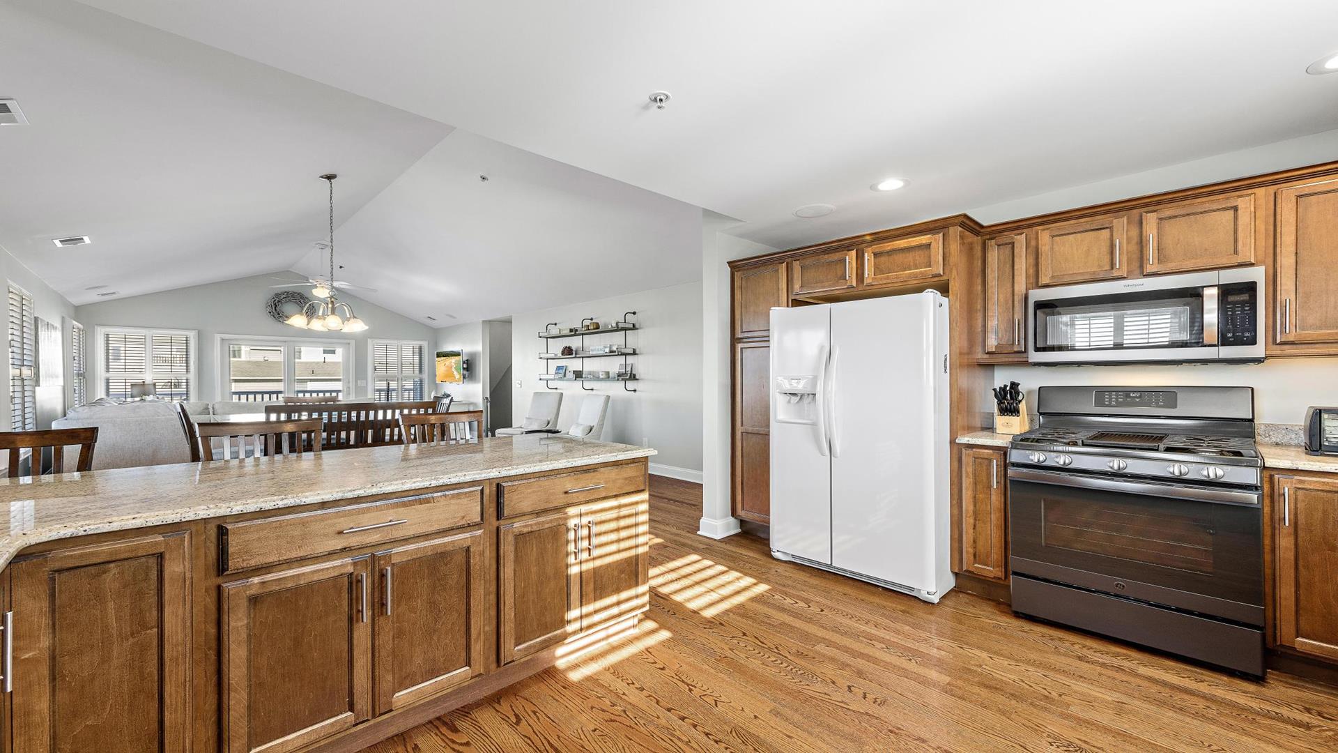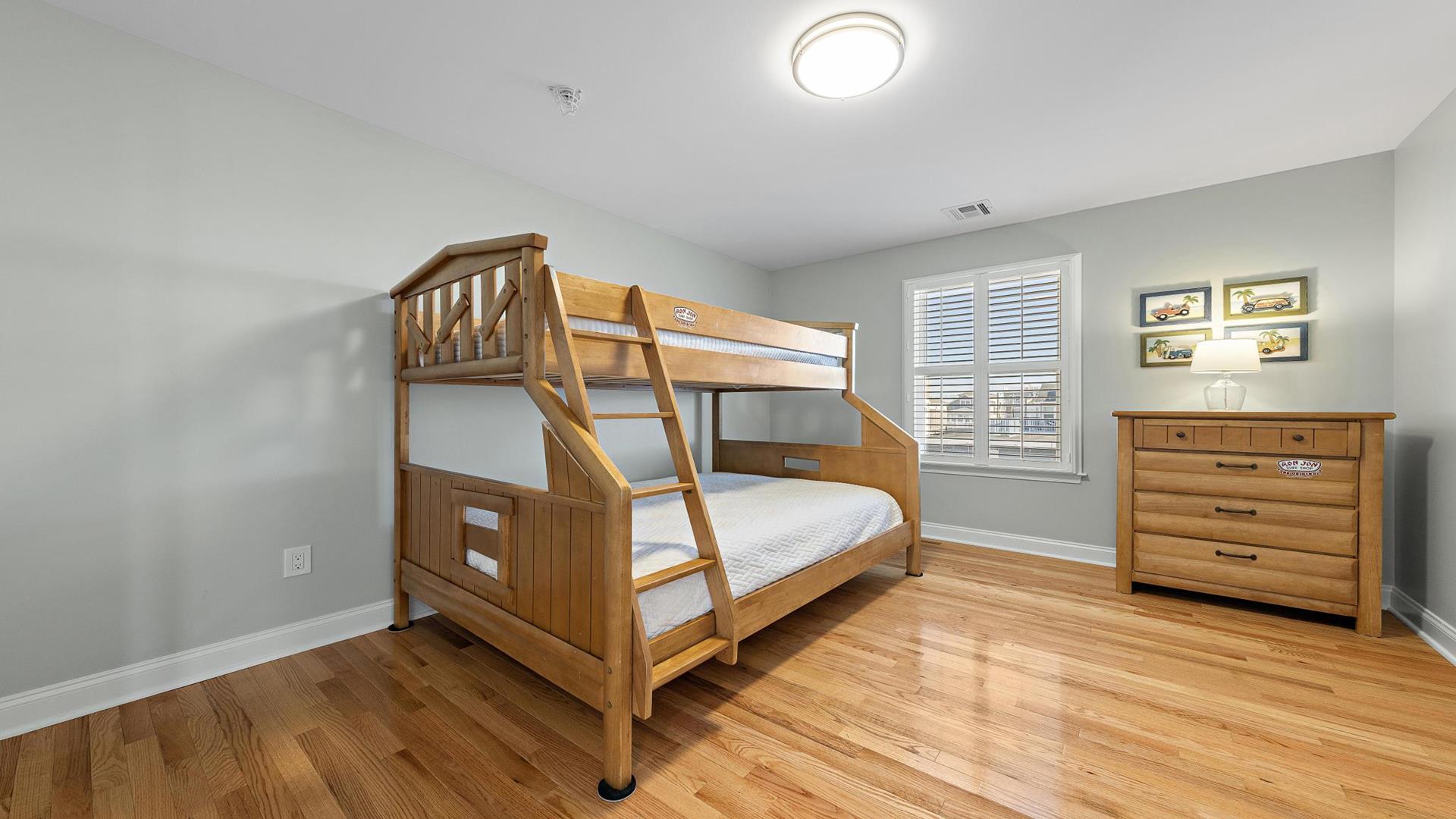 Welcome to your dream vacation rental in Ship Bottom; Upper-level Penthouse located on the Bay Side with stunning views of the bay and ocean. This newly renovated property sleeps 8 comfortably and is only 8 houses to the beach and 3 houses to the fishing pier perfect for that summer living. This spacious property features 4 bedrooms, 2 full bathrooms, and 1 half bathroom, making it the perfect retreat for families or groups of friends. As you step inside, you\'ll be greeted by a beautifully furnished interior with all the amenities you could need for a relaxing stay. The kitchen is fully equipped with a dishwasher, microwave, disposal, coffee maker, toaster oven, blender, stove, full-size refrigerator, oven, and kitchen island. Enjoy meals together at the dining table with seating for 8 guests or take the gathering outside to one of the 3 decks perfect for dining and lounging. Sip a coffee in the morning or a cocktail later in the day on the roof top deck and enjoy the panoramic views of LBI\'s beaches and bays. It truly doesn\'t get better than this. After a day at the beach, rinse off in the convenient outside shower and retreat to the comfortable living room with smart TV before firing up the gas grill outside. After dinner, you can enjoy the fire pit and ocean air This property was furnished with comfort in mind and includes cable TV, Blu-Ray player, high-speed internet, central AC, ceiling fans, washer, dryer, pillows, blankets, beach badges, beach chairs and bikes, everything you would expect in an upscale property. There is also off-street parking for 4 vehicles. Tenant responsible for linens including sheets and towels. Don\'t miss out on this incredible vacation rental in Ship Bottom as it does not disappoint!