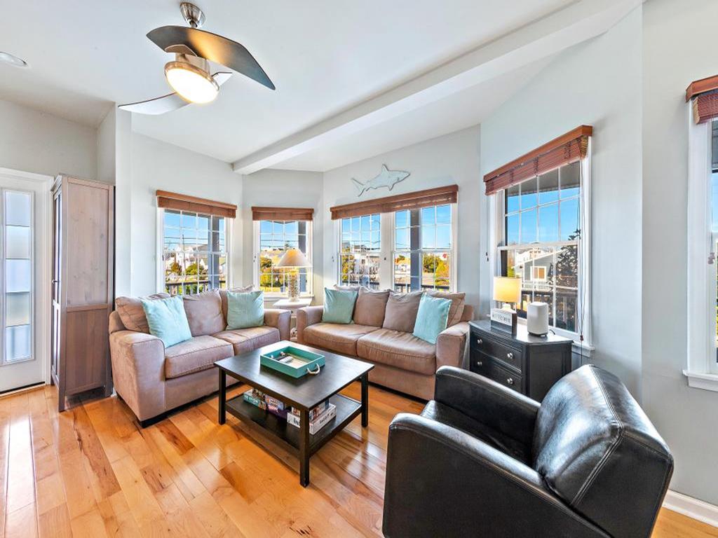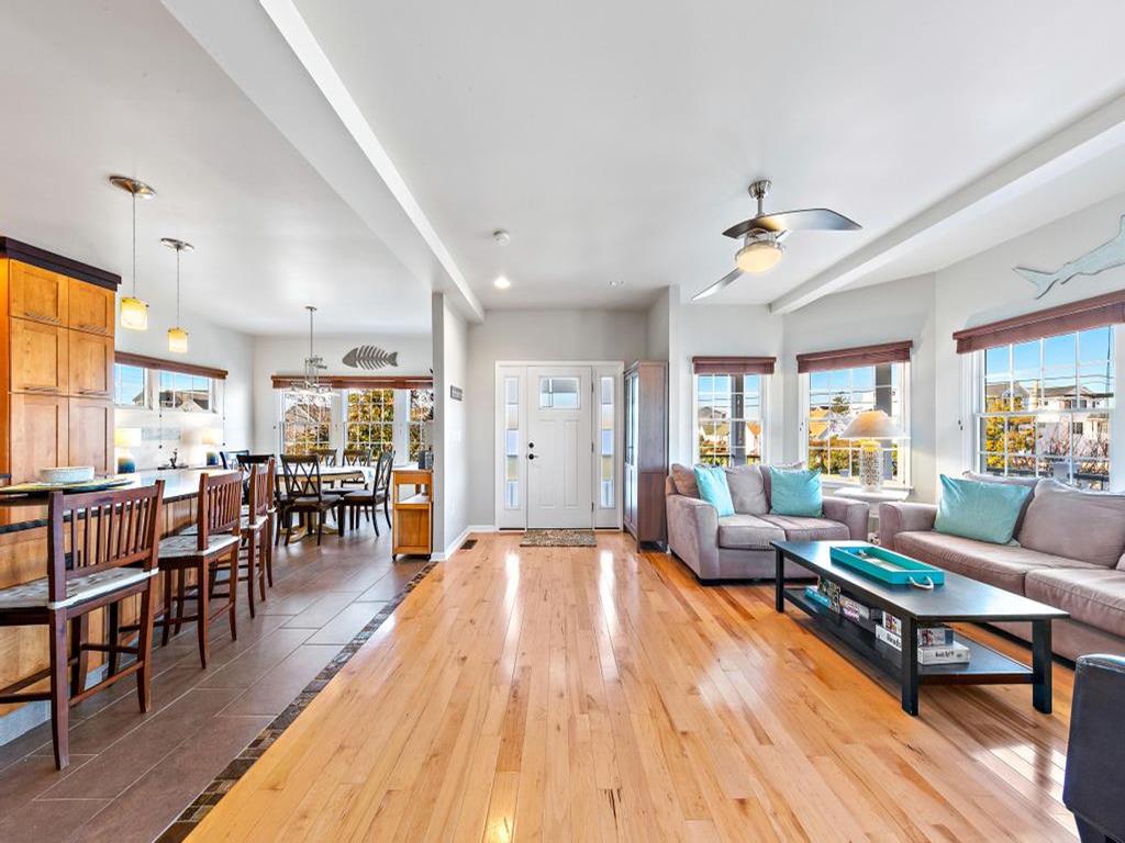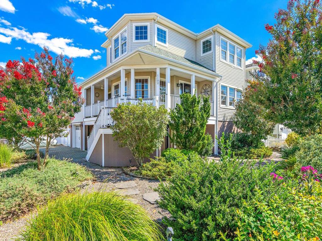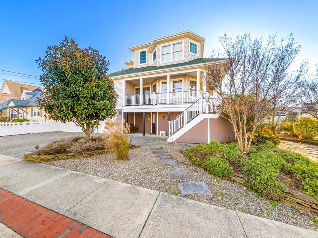 Lovely spacious 4 bedroom, 3 and a half bath contemporary non reverse living home in excellent condition, with open living room, kitchen and dining room. First floor junior master suite with kng bed and fist floor separate den with additional bed and slider to back deck and yard..Second floor king master and 2 additional large bedrooms, one with bunk and full sized bed, the other with full sized bed and full sized futon. Front and back decks to relax on and beautifully landscaped yard. And bonus huge garage turned den/rec room with ping pong, couches, TV and more. This property is new to the rental market with plenty of room for 2 families and multigenerational vacations. Exquisite landscaping, fully fenced and comfortable yard with dining and fire pit. Close the bridge, easy walk to the beach and easy on off the Island, This is a Friday to Friday rental.