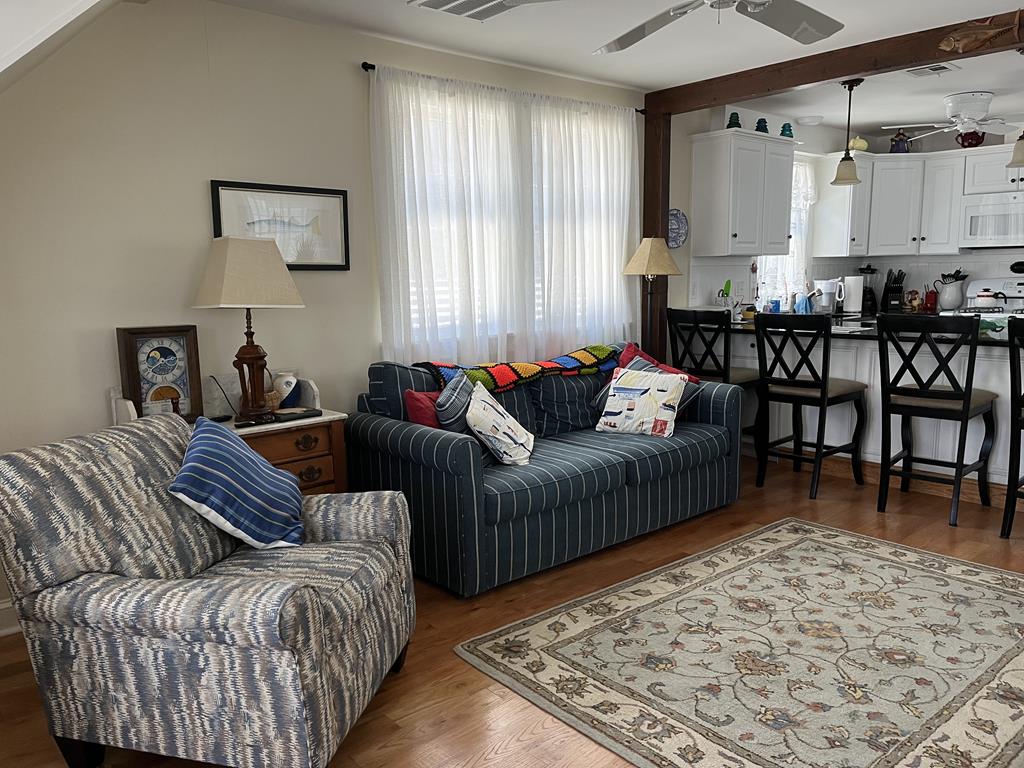 Well kept single family home located on the bayside in Ship Bottom. Located within walking distance to restaurants. Beach access at the top of the street. The first floor has the living room, dining room, kitchen, laundry and a half bathroom. The second floor offers three bedrooms and two full bathrooms. Nice private backyard with a deck and outside shower. Beach badges are provided. Central air conditioning and WIFI.