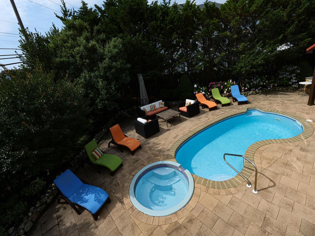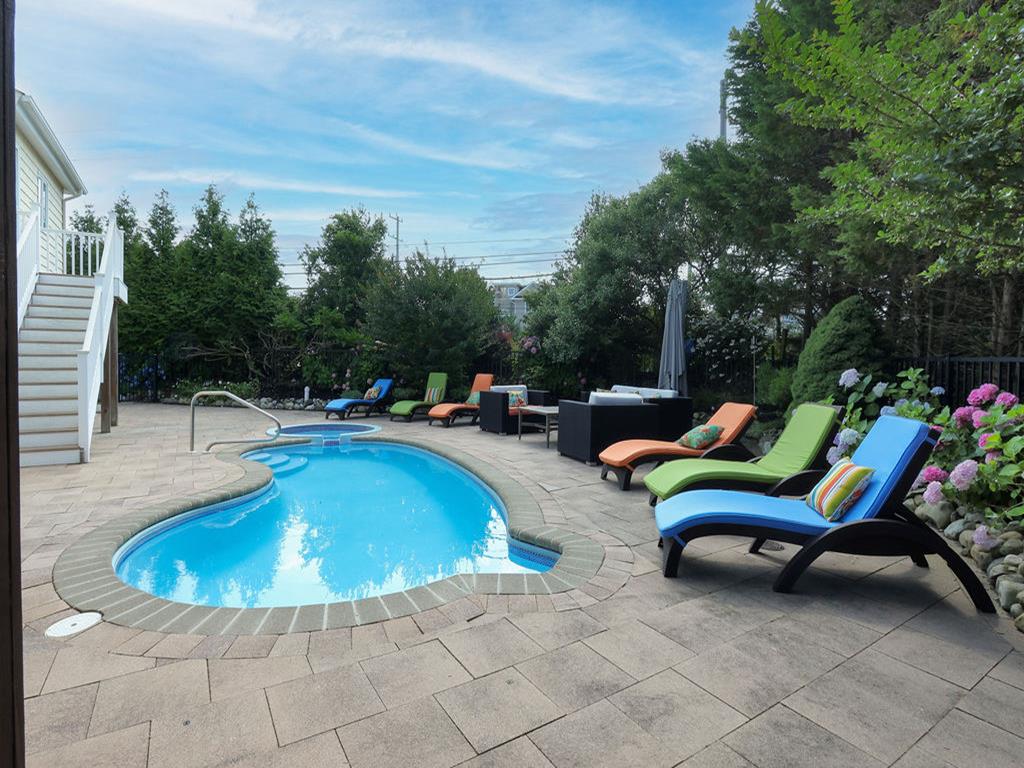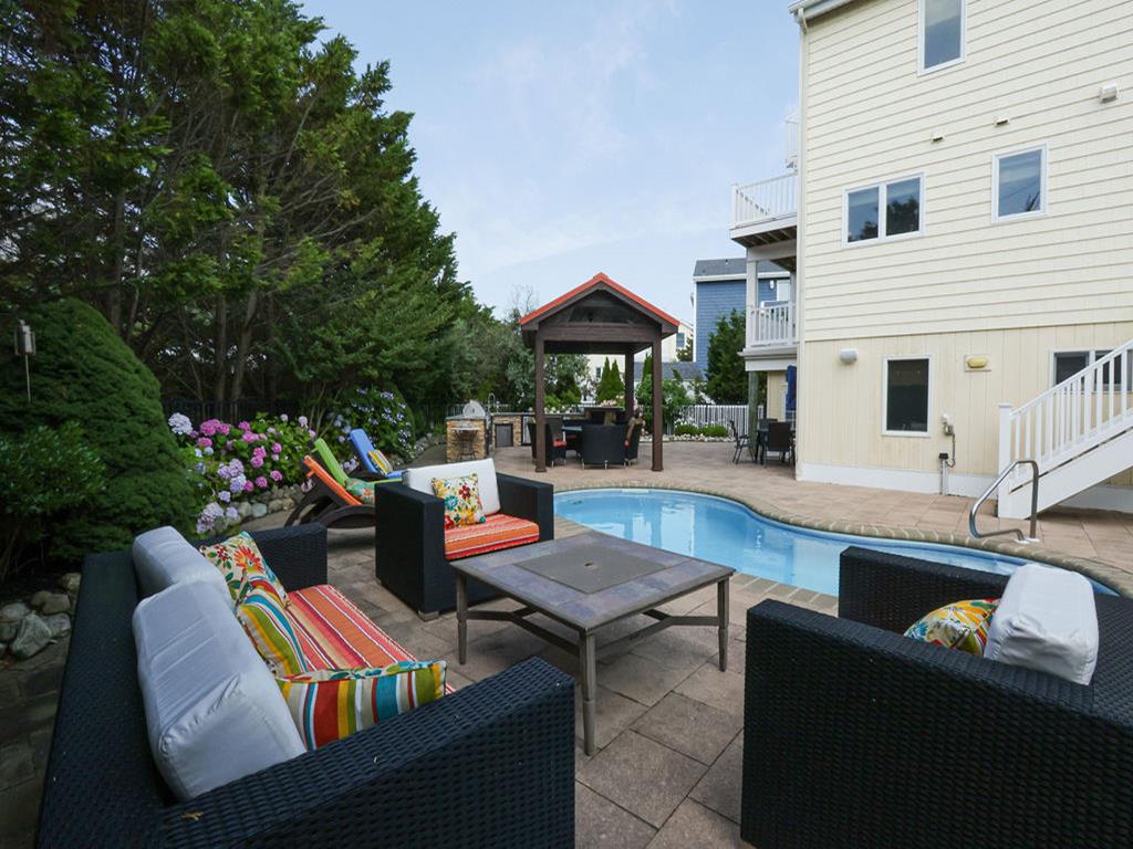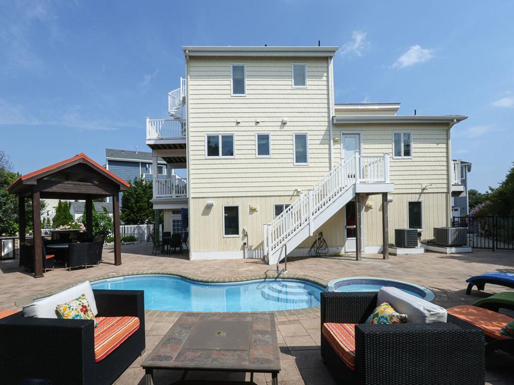 Friday check in gives you ethe entire weekend to enjoy Wonderful 5 Bedroom home plus a family room that contains a good quality queen sleep sofa . Three levels in this home and is located just four houses from the lifeguarded beach and four houses from the bay making it a quick walk to both. Lane 48 also known as Duck Blind Ally will be on left. Enjoy the beautiful backyard with a pool, outdoor kitchen with refrigerator, icemaker and Cabana. Plenty of parking available. Just a short 5 minute walk over the Blvd to the ocean. There is parking and tennis courts a block over across the Blvd . This is a breakdown of the beds in each room: Third floor: Bedroom with one queen bed: Sleeps 2 Bedroom with one twin bed and one Pyramid with a twin over a double bed: Sleeps 3 Second floor: Kitchen, dining room, living room and master bedroom Master bedroom has one king bed: Sleeps 2 Ground floor: Two bedrooms and a bed/family room Bedroom: Queen bed: Sleeps 2 Bedroom: This bedroom has a sleeper chair in from the family room that will sleep one Family room: Sleeper couch with queen size bed: Sleeps 2 Small Pet permitted with $350 fee under 40lbs CONSIDERED with Permission TENANTS MUST TAKE DAMAGE INSURACE FOR $70 DUE TO EXPENSE OF POOL & HOT TUB REPAIR SHOULD DAMAGE OCCUR. SECURITY WILL BE LOWERED TO $1000 . Please let your agent know your choice to adjust lease.