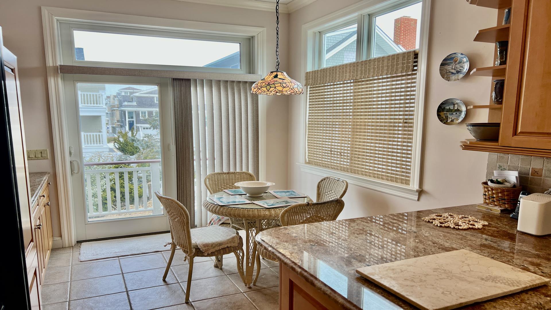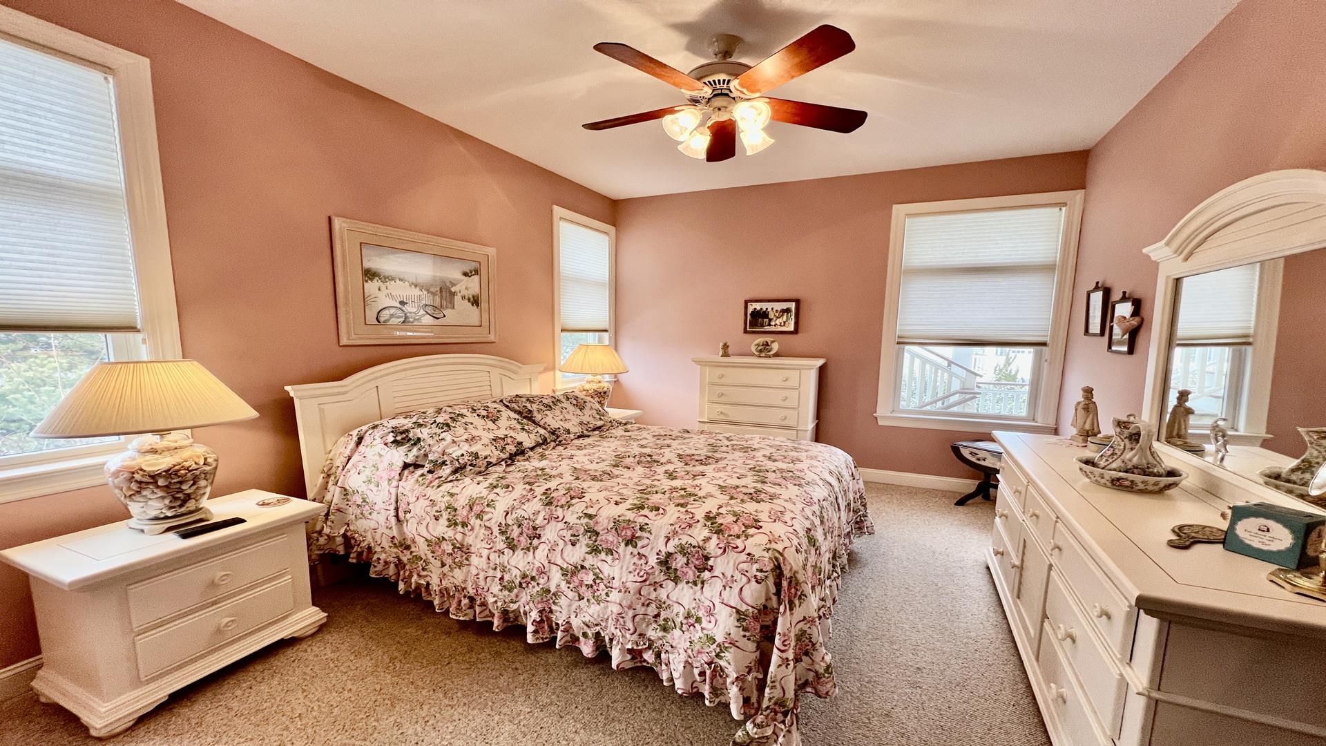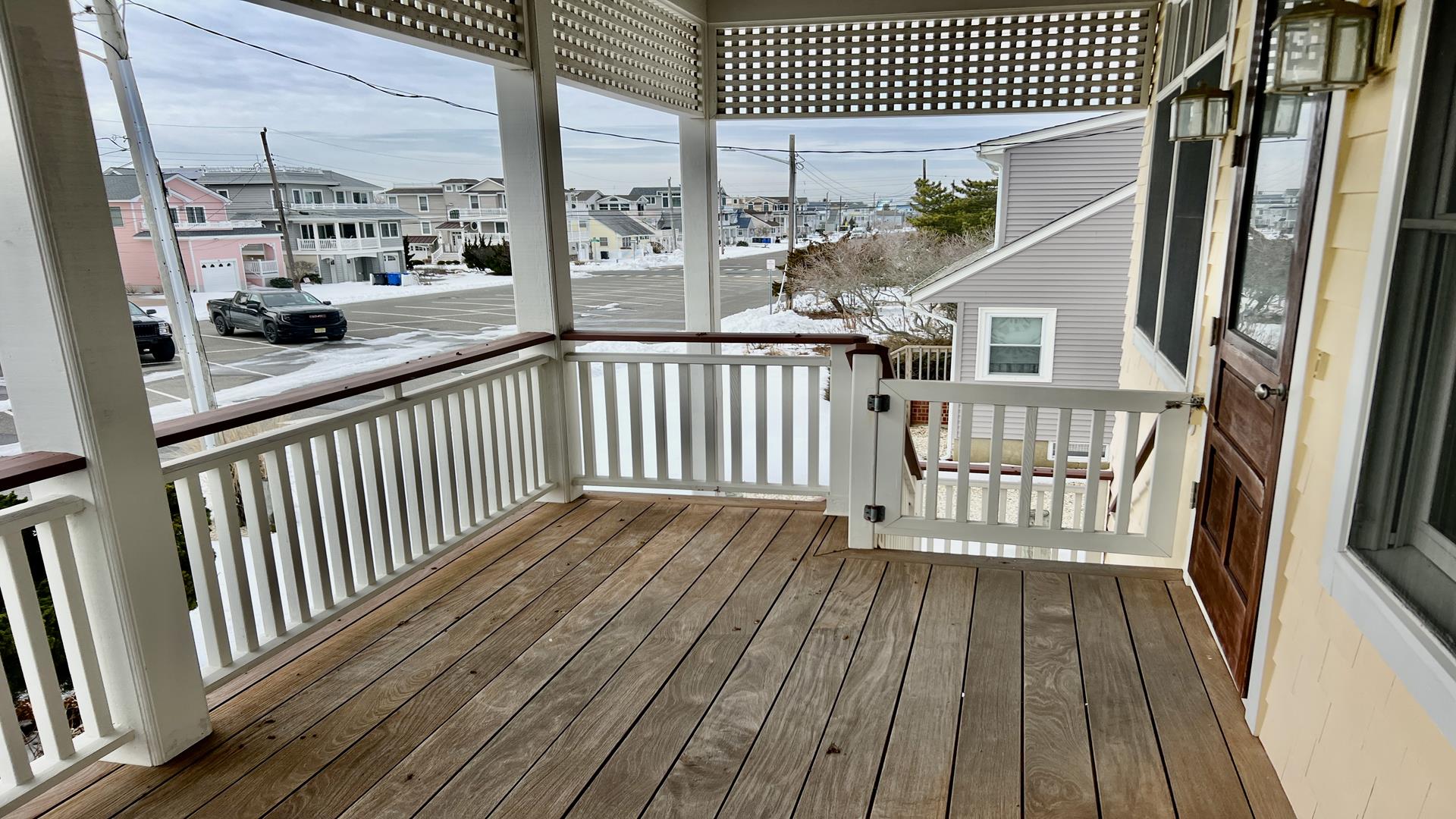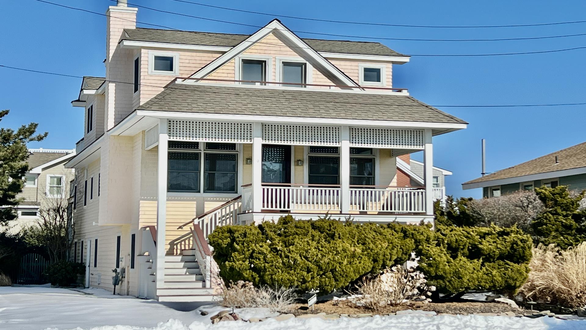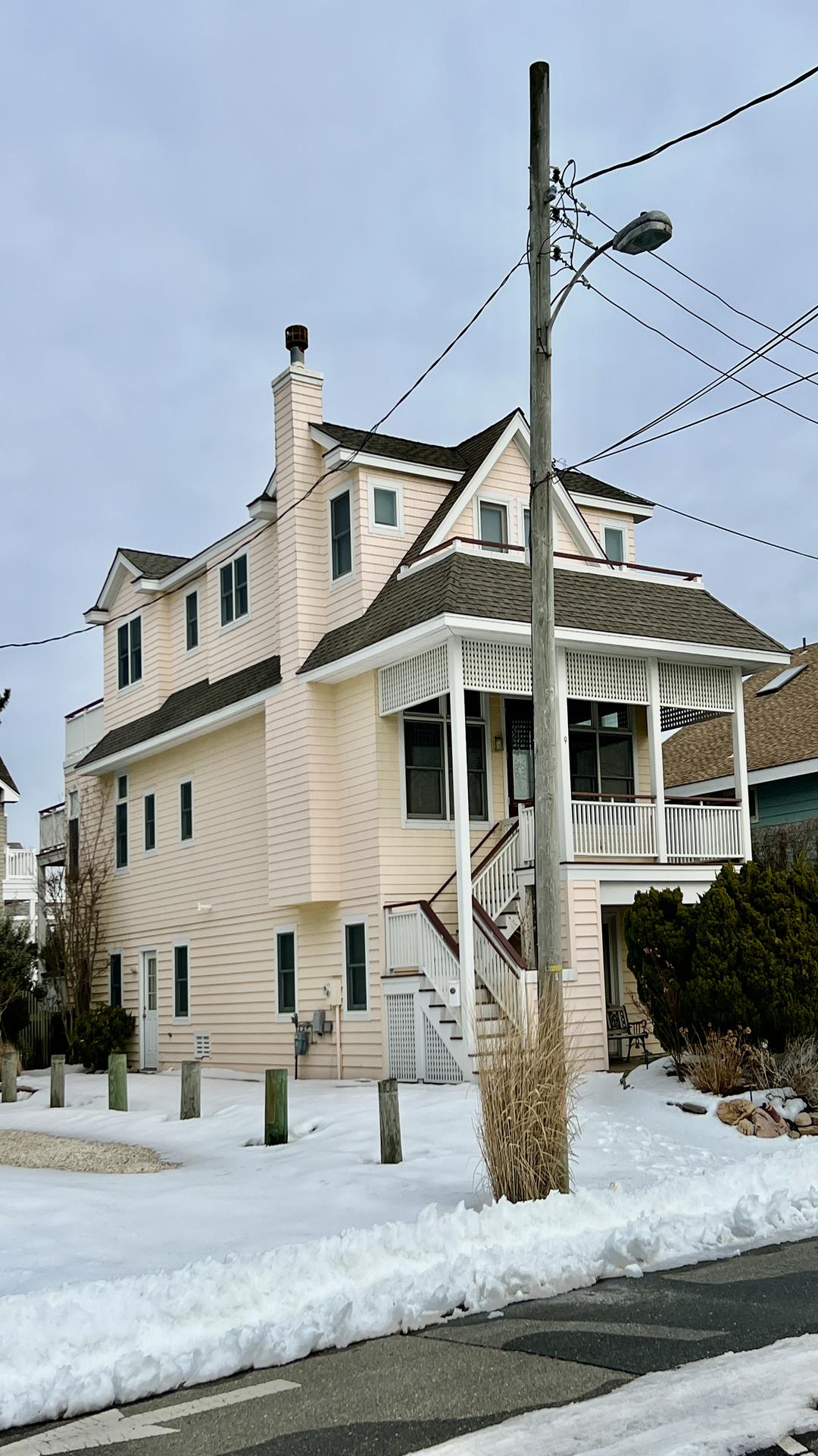 Lovely home 2nd from the ocean in the heart of Beach Haven. This 5 bedroom, 4 1/2 bath home has plenty of room for everyone. Walk in to the living room/ dining room with hard wood flooring leading to the full size chefs kitchen. This kitchen has everything you need, plenty of cookware, silverware and dishes along with 2 ovens. There is a queen bedroom on this floor with a private bath, upstairs there are 4 more bedrooms and 2 full baths. Three of these bedrooms have an ocean view, 2 of these bedrooms have a large deck off of them. The lower level offers a comfortable sitting area, full size washer/dryer, full bathroom and a back door leading to a picnic table and outside shower.