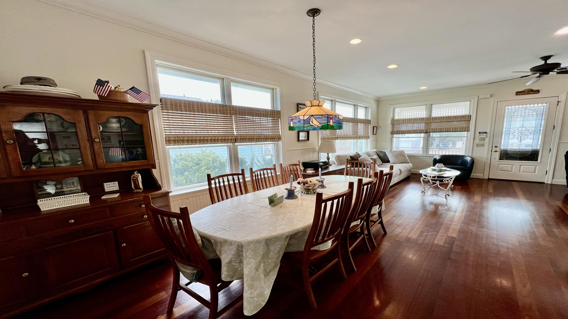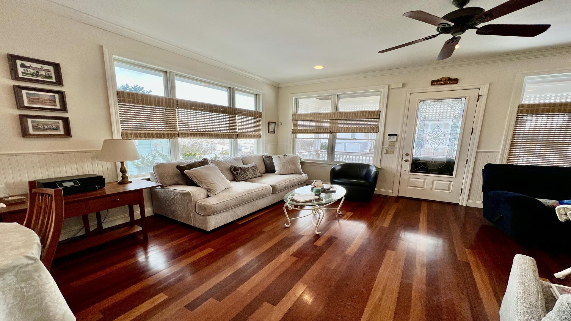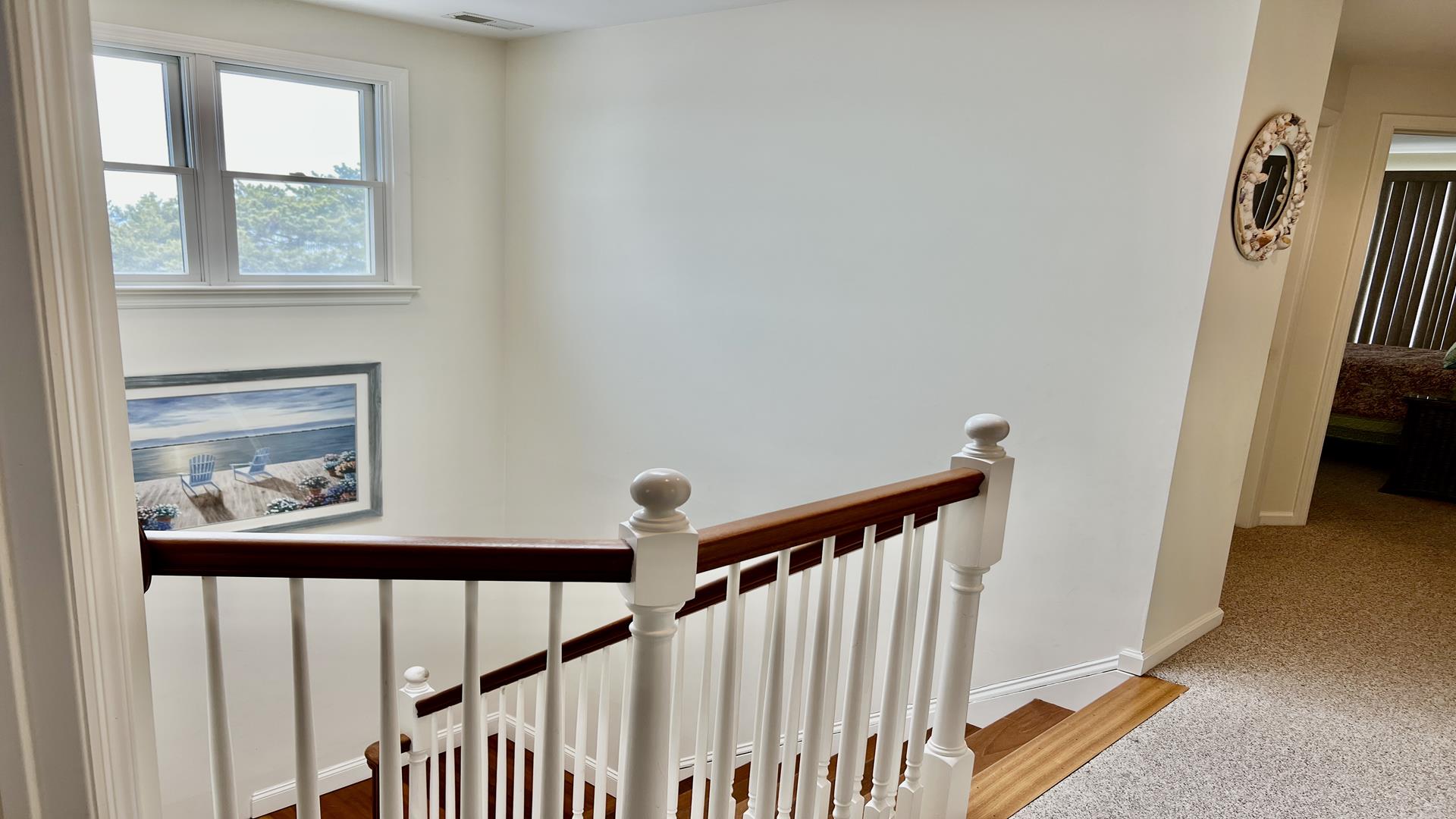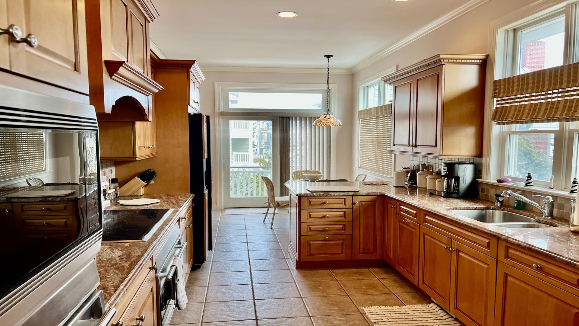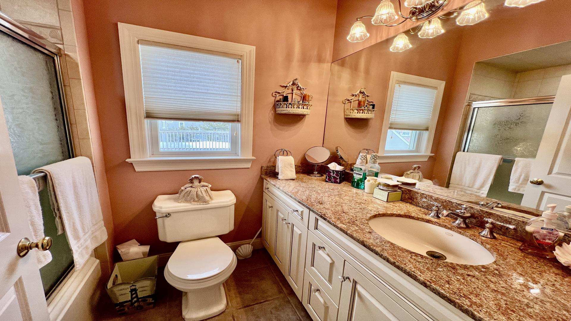 Lovely home 2nd from the ocean in the heart of Beach Haven. This 5 bedroom, 4 1/2 bath home has plenty of room for everyone. Walk in to the living room/ dining room with hard wood flooring leading to the full size chefs kitchen. This kitchen has everything you need, plenty of cookware, silverware and dishes along with 2 ovens. There is a queen bedroom on this floor with a private bath, upstairs there are 4 more bedrooms and 2 full baths. Three of these bedrooms have an ocean view, 2 of these bedrooms have a large deck off of them. The lower level offers a comfortable sitting area, full size washer/dryer, full bathroom and a back door leading to a picnic table and outside shower.