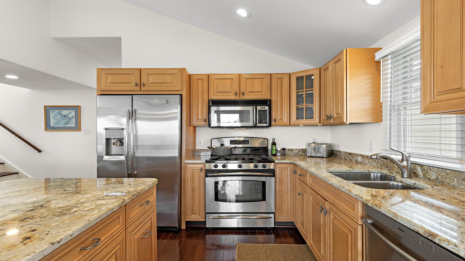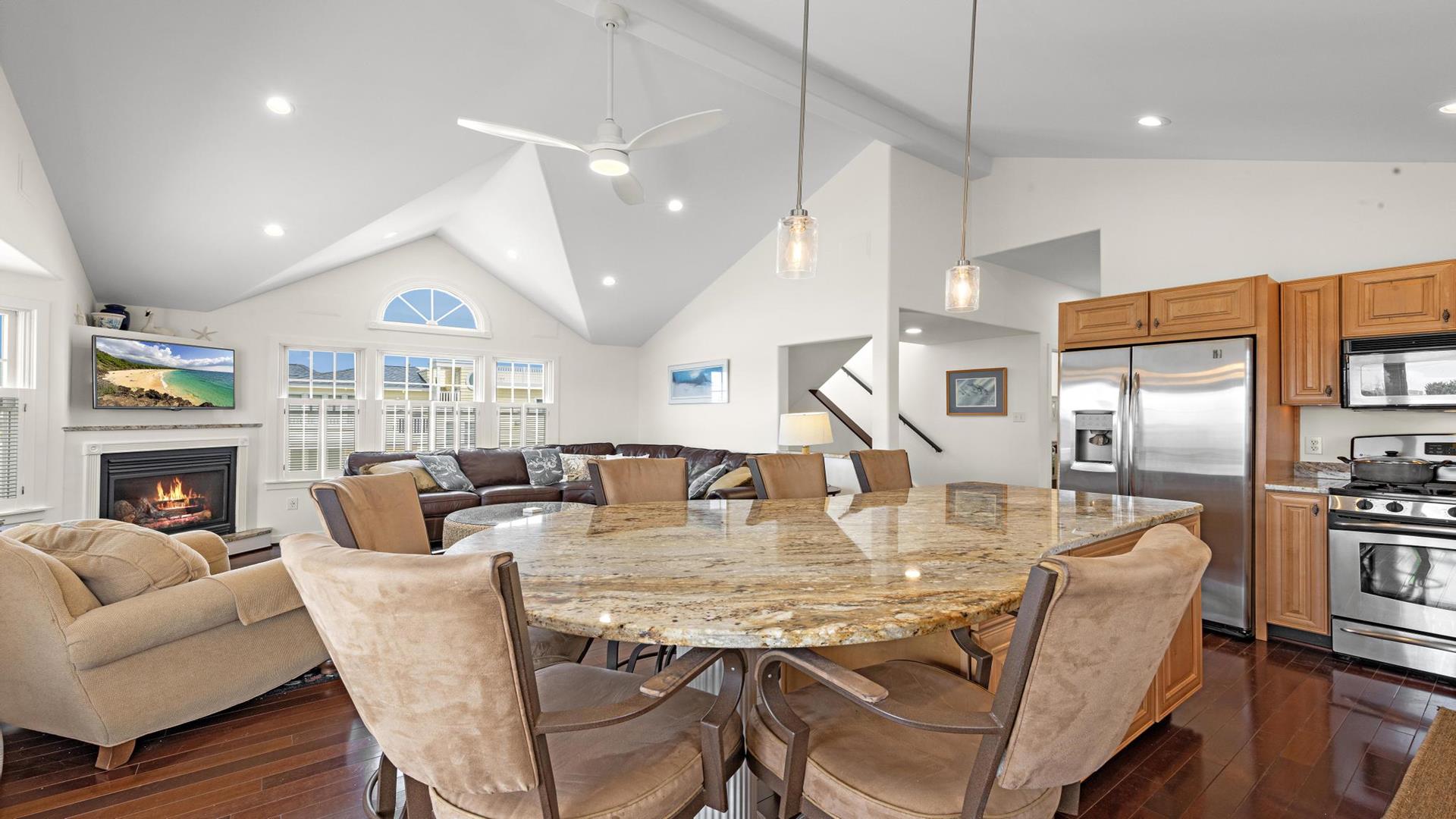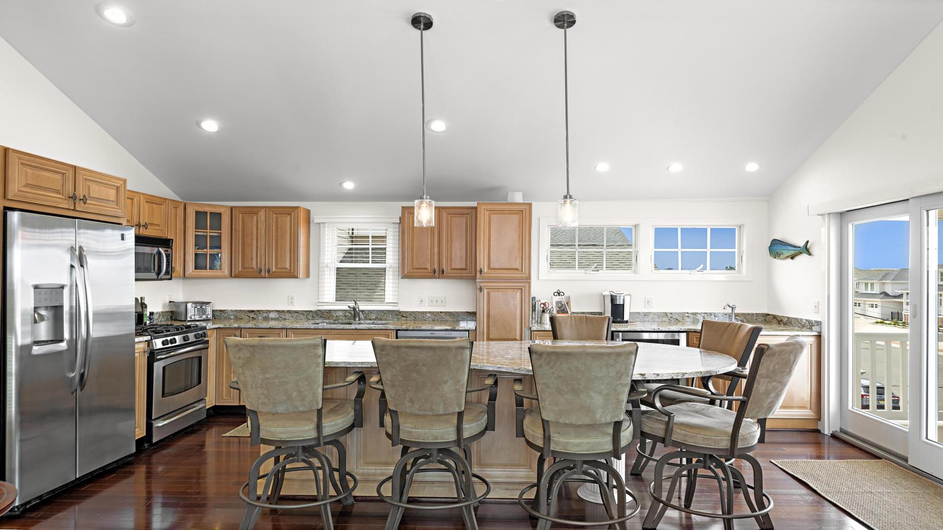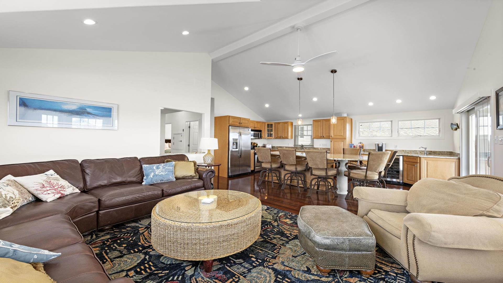 Welcome to your dream vacation rental in the heart of Beach Haven! This stunning 2nd floor unit of a Duplex has been updated and includes 3 bedroom 2 full baths perfect for families or groups of up to 8 people. Located on the Bay Side, this home is just a short walk to the beach access. Step inside and you\'ll find a beautifully furnished interior with all the amenities you need for a comfortable stay. The primary bedroom and ensuite features a luxurious California King, while bedroom 2 provides a comfortable queen . Bedroom 3 is a bunk room with 2 sets of bunk beds (4 twins) for the kiddos. The fully equipped kitchen comes with a dishwasher, microwave, toaster, blender, stove, full-size refrigerator, oven, and all the cooking utensils you need to whip up delicious meals during your stay. Relax in the spacious living room with central AC, ceiling fans, and 2 TVs for entertainment. Enjoy meals at the dining table or head outside for el fresco dining on the deck with gas grill.. Head up to the roof top deck and sip on a drink as the sun goes down. The level yard and private yard provide plenty of space for outdoor activities, and beach equipment is available for your convenience. This property offers high-speed internet, a garage, parking for 4 vehicles, and beach badges for 8 guests. Enjoy the convenience of a washer, dryer, iron, vacuum cleaner, and all the cleaning supplies you need. The rooftop deck offers stunning views of the surrounding area, and the enclosed outside shower is perfect for rinsing off after a day at the beach. This property is pet-free and smoke-free, ensuring a clean and healthy environment for all guests. Don\'t miss out on this amazing vacation rental in Beach Haven! Book now and experience the best that the Jersey Shore has to offer.