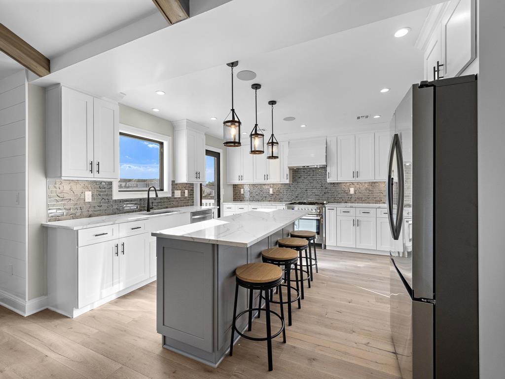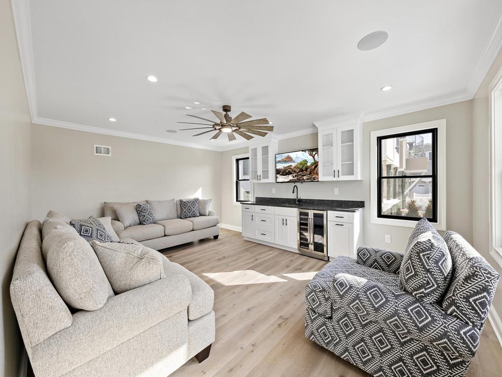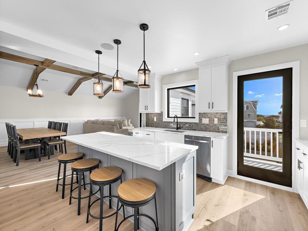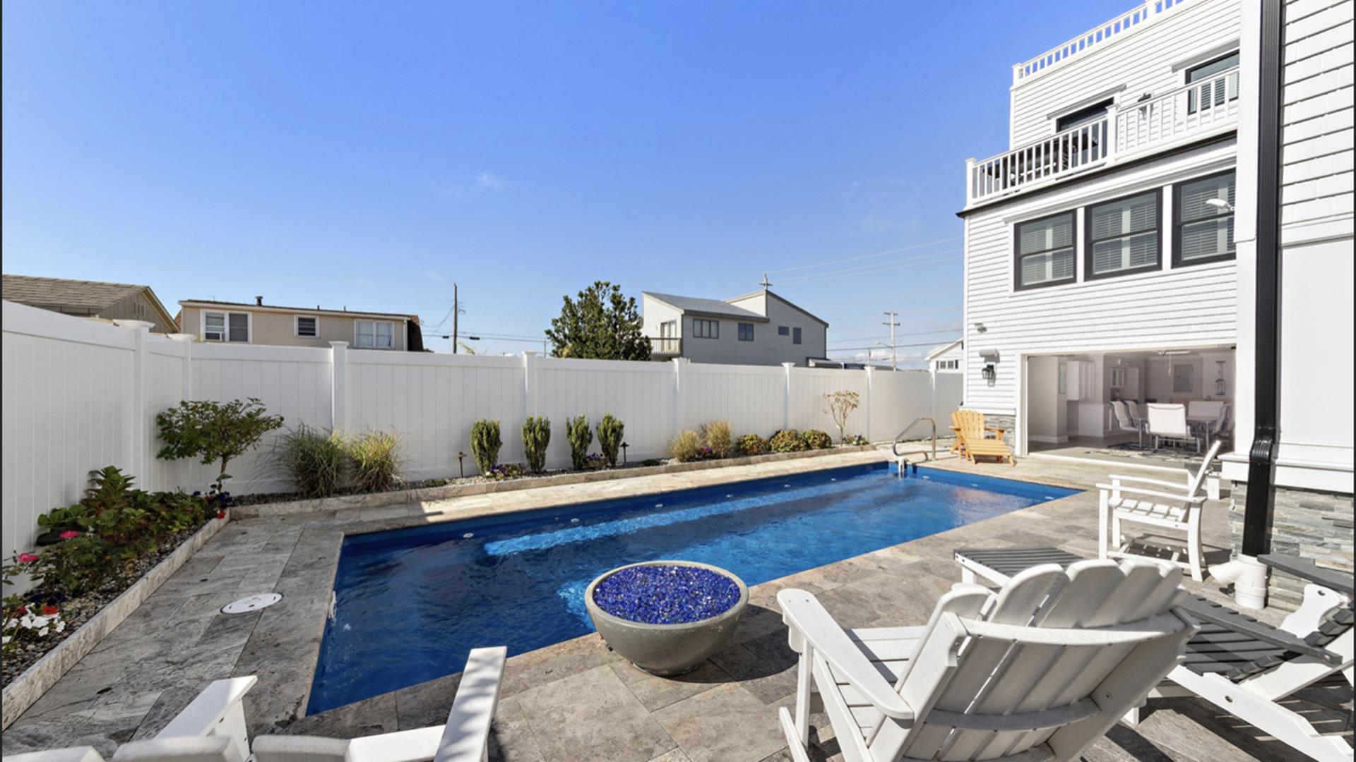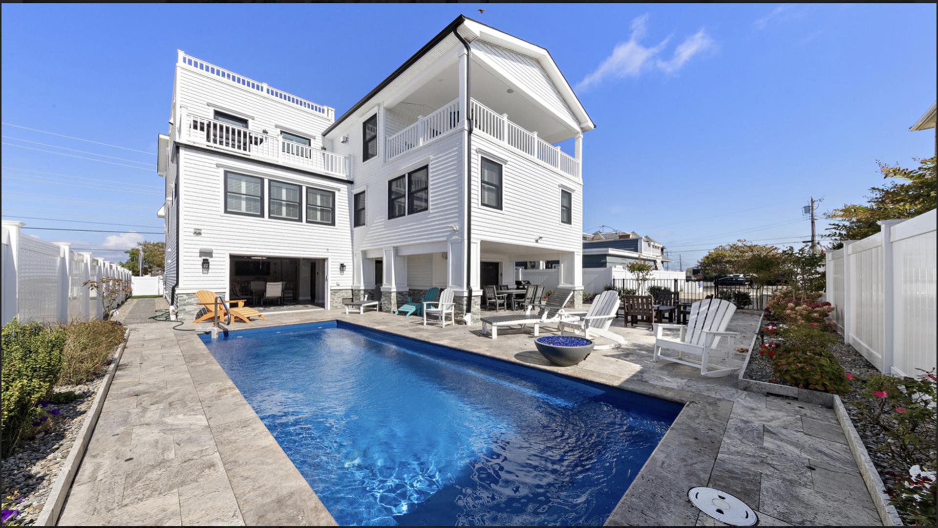 This stunning oceanblock new construction escape offers the ultimate setting for creating unforgettable summer memories. Just three houses from the beach, located in the heart of Ship Bottom, this brand new luxury home is designed to offer an unparalleled vacation experience, blending modern elegance with every amenity imaginable. With six spacious bedrooms and seven and a half spa-like baths, this home comfortably accommodates up to 17 guests, making it the perfect getaway for families and groups. The thoughtfully designed sleeping arrangements include two king suites, a queen suite, a double bed, and two pyramid bunk rooms, ensuring both comfort and style. The heart of the home is a gourmet chef’s kitchen with a butlers pantry, seamlessly flowing into open-concept living spaces. An elevator, wet bar, expansive deck overlooking the pool and a breathtaking rooftop deck with panoramic ocean views elevate the experience, providing the perfect blend of convenience and luxury. Additional highlights include a second living room, dedicated laundry room with 2 washers and 2 dryers, a private gym and steam room offering wellness and rejuvenation. Beyond the interiors, this home is built for entertainment with a backyard that is an oasis of its own, featuring a heated inground pool, hot tub and a putting green—ideal for unwinding after a sun-soaked day at the beach. A spacious private driveway provides ample parking, adding to the effortless convenience of this exclusive rental offering an extraordinary experience like no other. Please note: Rental contract addendums must be signed for use of the pool, hot tub elevator, gym, and steam room.