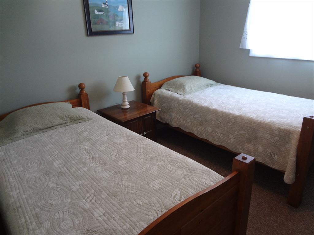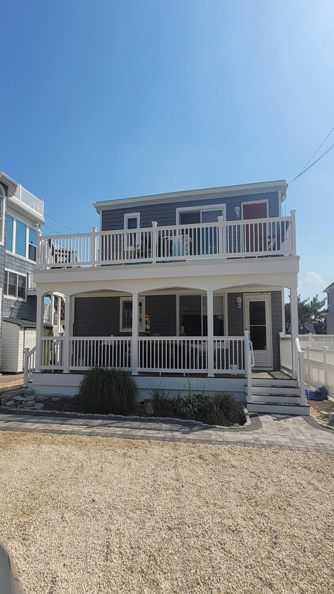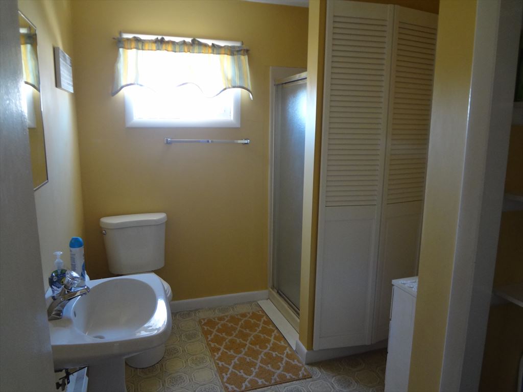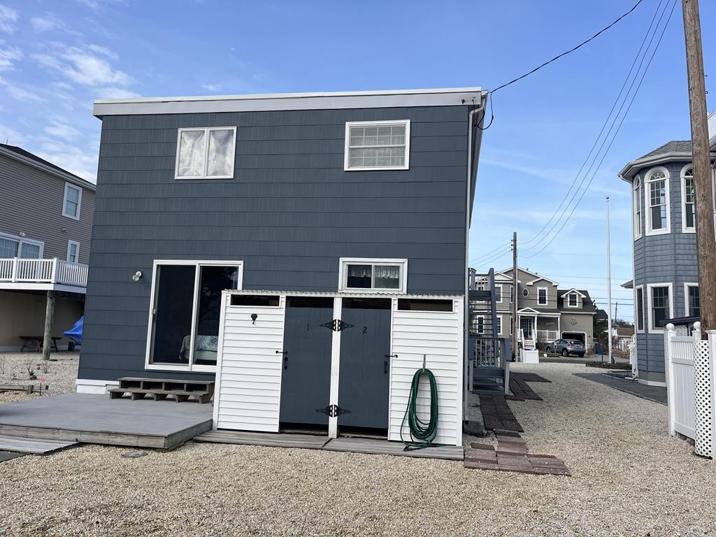 This is the 2nd floor Unit of a well kept duplex . with 1 1/2 baths and , 3 nice size bedrooms . The new decks and stairs are ideal for sitting and catching the breezes . Living room & dining room area are nice size for family gatherings and the Breakfast counter in kitchen that seats 2. Full size washer & dryer , private outdoor shower & rear yard shared by both units. Plenty of off street parking. Short walk to bay beach for concerts and ocean beach and easy on and off the Island . . Close to Wawa, Speakeasy Pizza, Raimondo\'s, Ship Bottom Shellfish. There is a Wall-Mounted A/C unit which cools the whole unit. No smoking, and no pets permitted.
