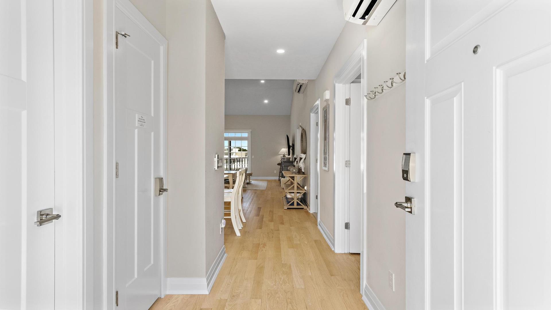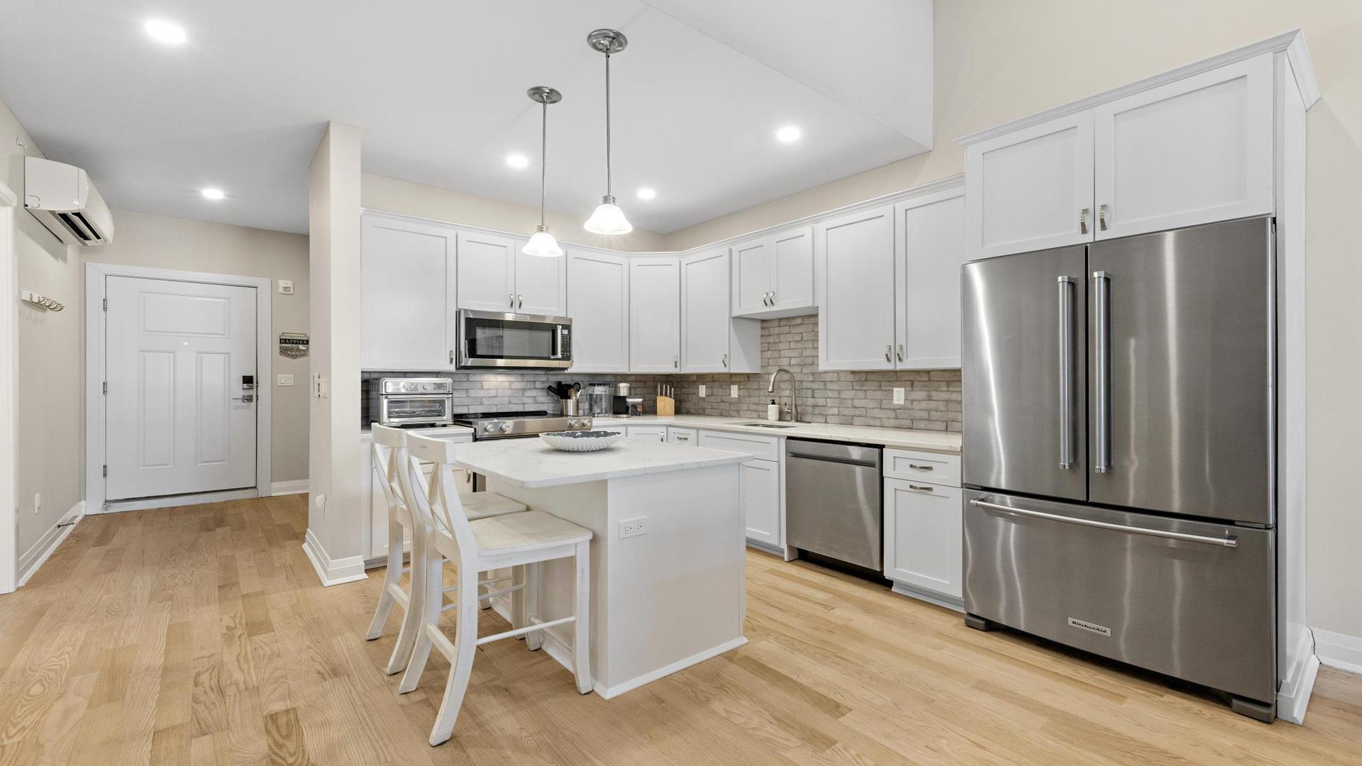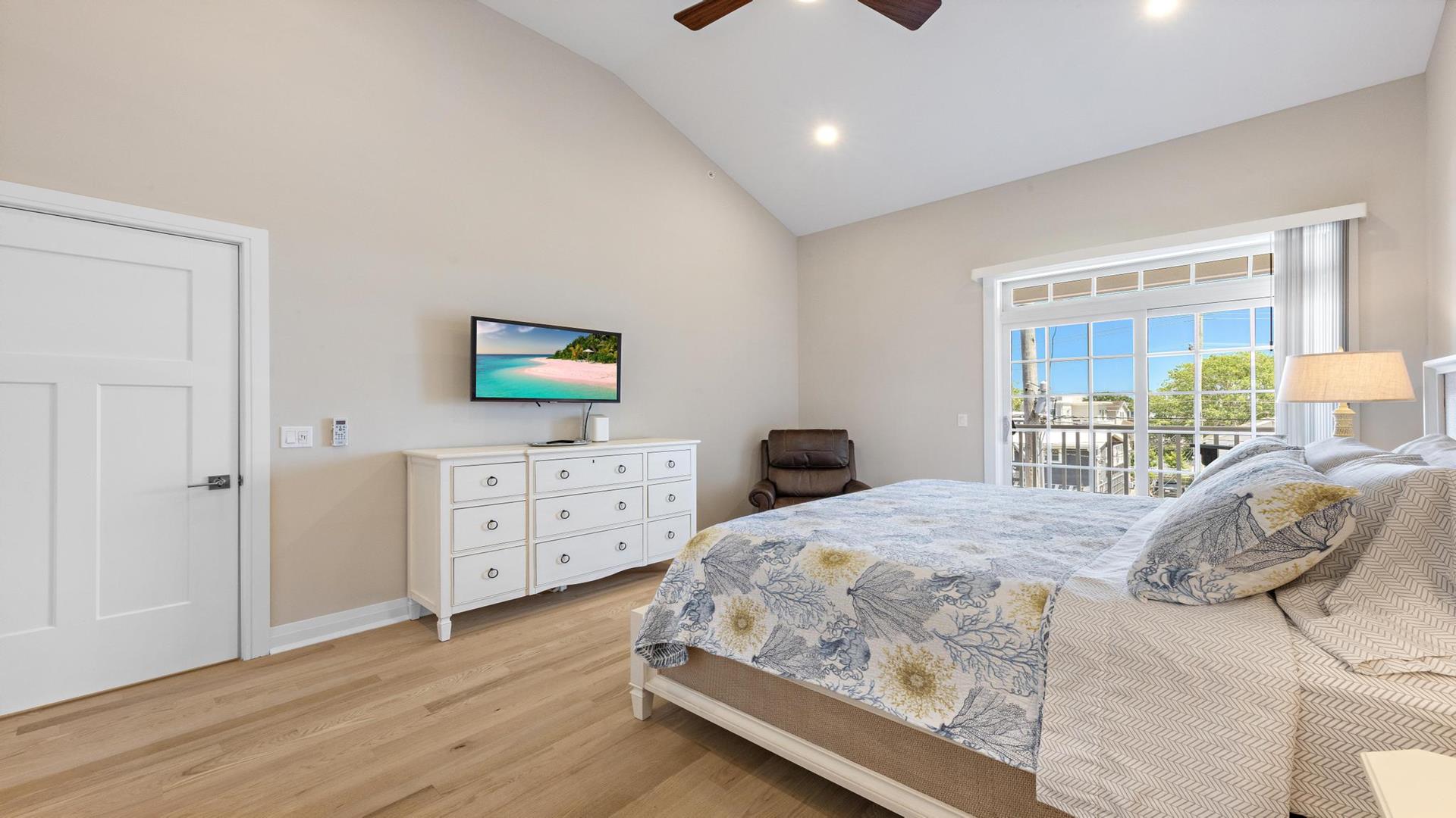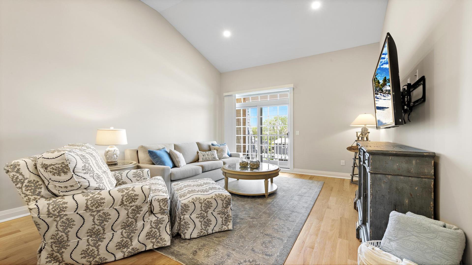 Welcome to your perfect beach getaway in Beach Haven! This beautiful, 2-bedroom, and 2-full bathroom condo property located on the Bay Side is ideal for a group of up to 7 people and walking distance to all Beach Haven has to offer. As you step inside, you\'ll find a comfortable open concept living room and kitchen.The fully-equipped kitchen features modern appliances, including a dishwasher, microwave, convection oven, Keurig coffee maker, and a kitchen island perfect for preparing family meals. Primary bedroom includes a king mattress and ensuite,. The second bedroom has a full over full bunk that can sleep 4 and there is a King sofa bed in the living room. Additional amenities such as a portable crib, high-speed internet, and smart TVs throughout the property will ensure your stay is as convenient as it is enjoyable. Step outside onto the deck or balcony to enjoy the fresh sea breeze or go up to the roof top deck and gather around the outdoor firepit for cozy evenings under the stars. The rooftop deck offers panoramic views of the surrounding area, while the association pool is perfect for a refreshing dip on sunny days. For your convenience, this property comes fully furnished with beach equipment, baby equipment, and all the essentials you need for a comfortable stay. Just bring your own linens, and you\'re all set to enjoy a relaxing vacation by the beach. With amenities like an elevator, garage parking for 2 cars, beach badges, and access to a shared outside shower, this property has everything you need for a stress-free vacation. And rest assured, it is pet-free and smoke-free for a clean and safe environment. Don\'t miss out on the opportunity to stay in this beautifully appointed rental property in Beach Haven. Book now and create unforgettable memories with your loved ones in this coastal paradise!