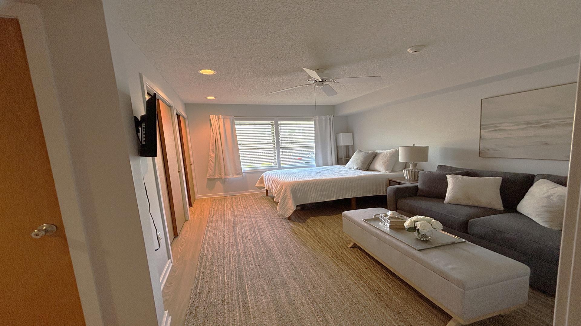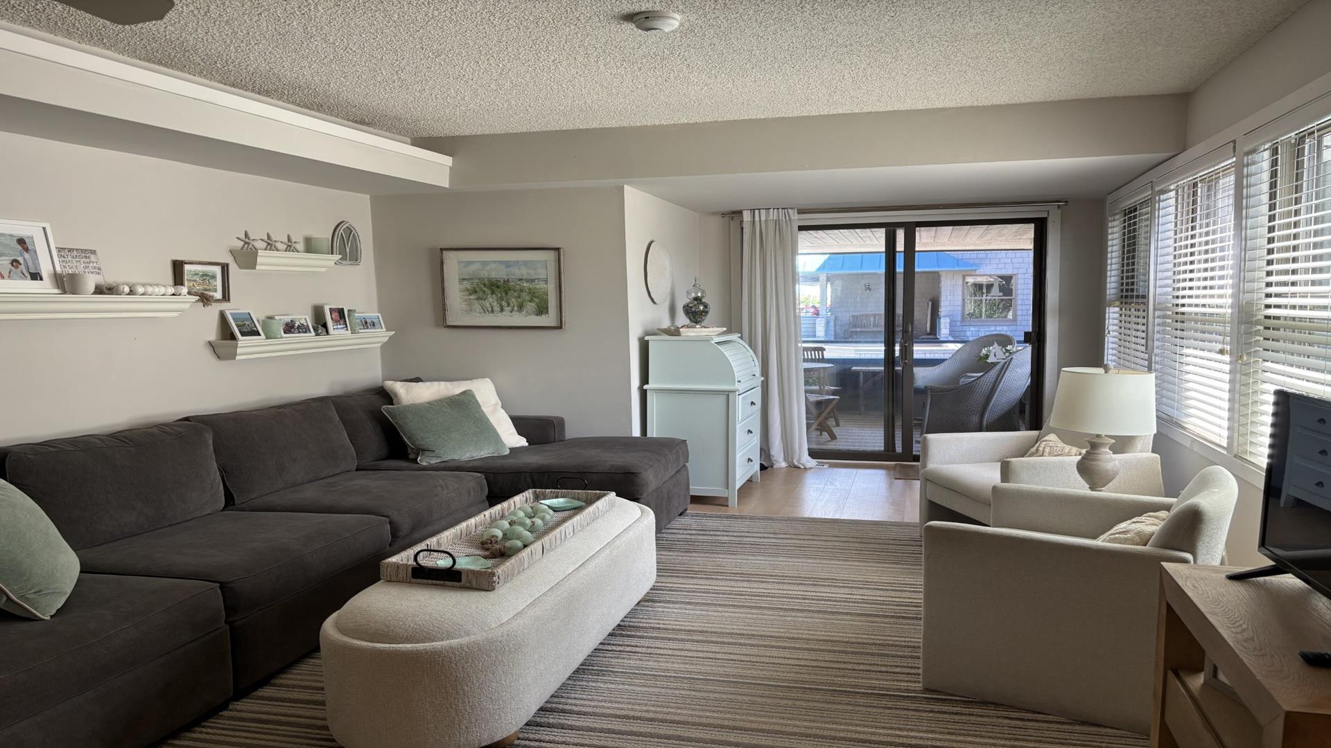 This is the only unit with a private entry and with parking right outside your door. With very few stair steps inside, it makes this the perfect unit if you have difficulty walking. From the entry, you can turn right go up a few steps to the kitchen and living area. The bedrooms on the first level have a door to close off the hall, making them very quiet and private. Owner willing to stagger check in dates as long as it is for a full week rental. Please refer to 163060 when inquiring about this property.