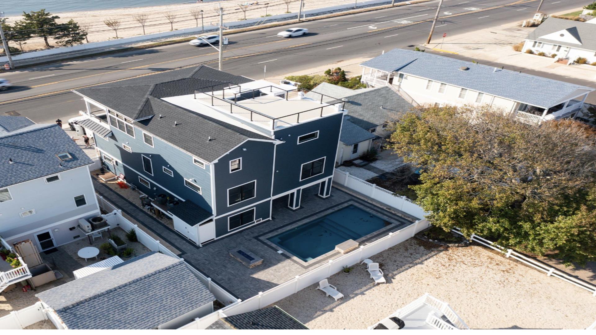 Oceanside New Construction – Perfect Beach Retreat This stunning 6-bedroom, 4.5-bath home comfortably sleeps 16 and checks every box for the ideal shore getaway. Featuring an elevator, spacious open-concept kitchen and living area, and thoughtful design throughout, it’s built for entertaining and relaxing with family and friends. Located just one block from Bayview Park and only 8 houses to the beach, you’ll enjoy the best of both bay and ocean living. Take in unobstructed bay views and breathtaking sunsets from the comfort of your home. Outdoors, a private paver patio with pool, gas firepit, and lounge space makes it easy to unwind after a beach day. Extras include beach chairs, a beach cart, and 14 beach badges for tenant use—everything you need for a stress-free stay.