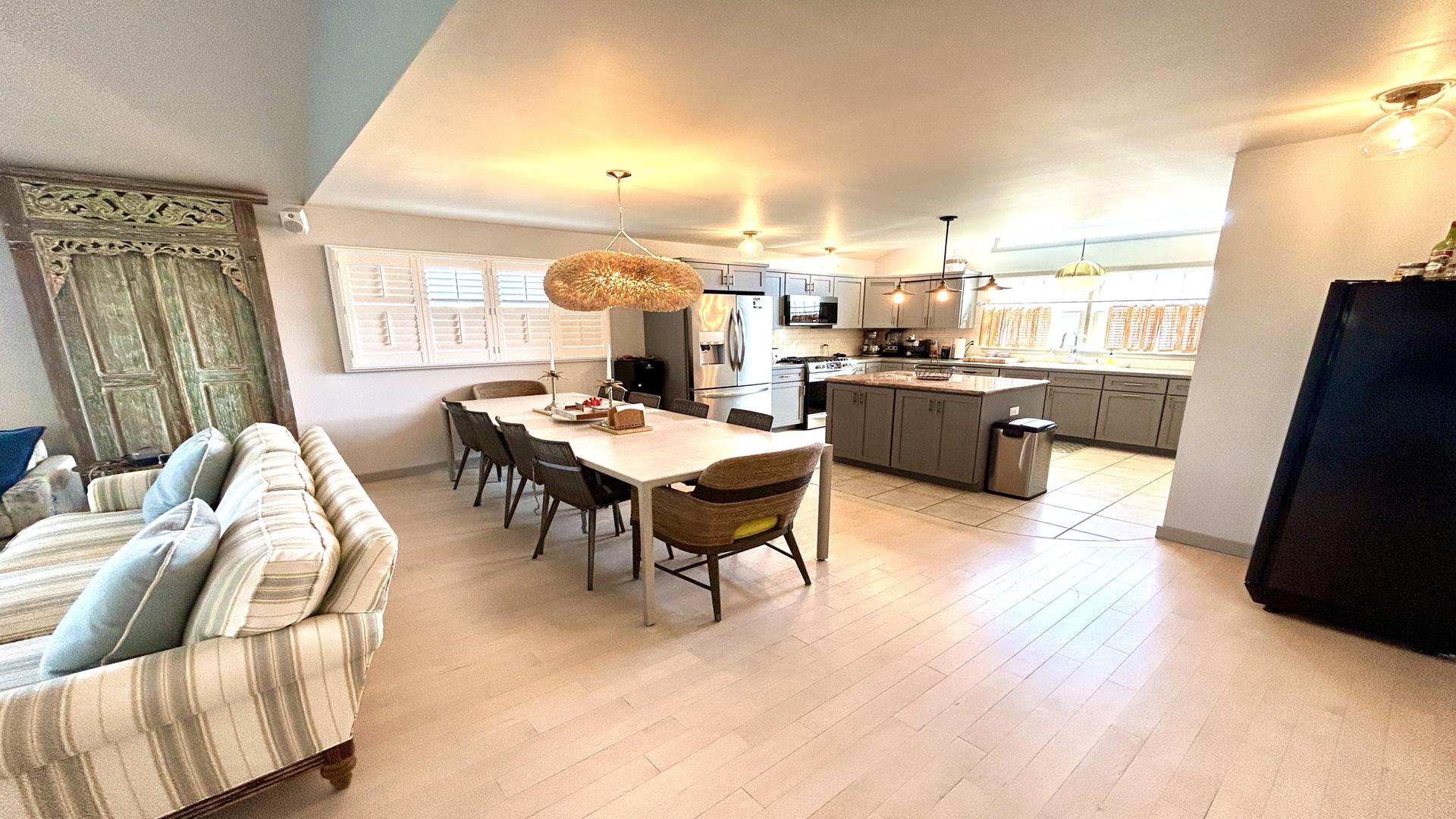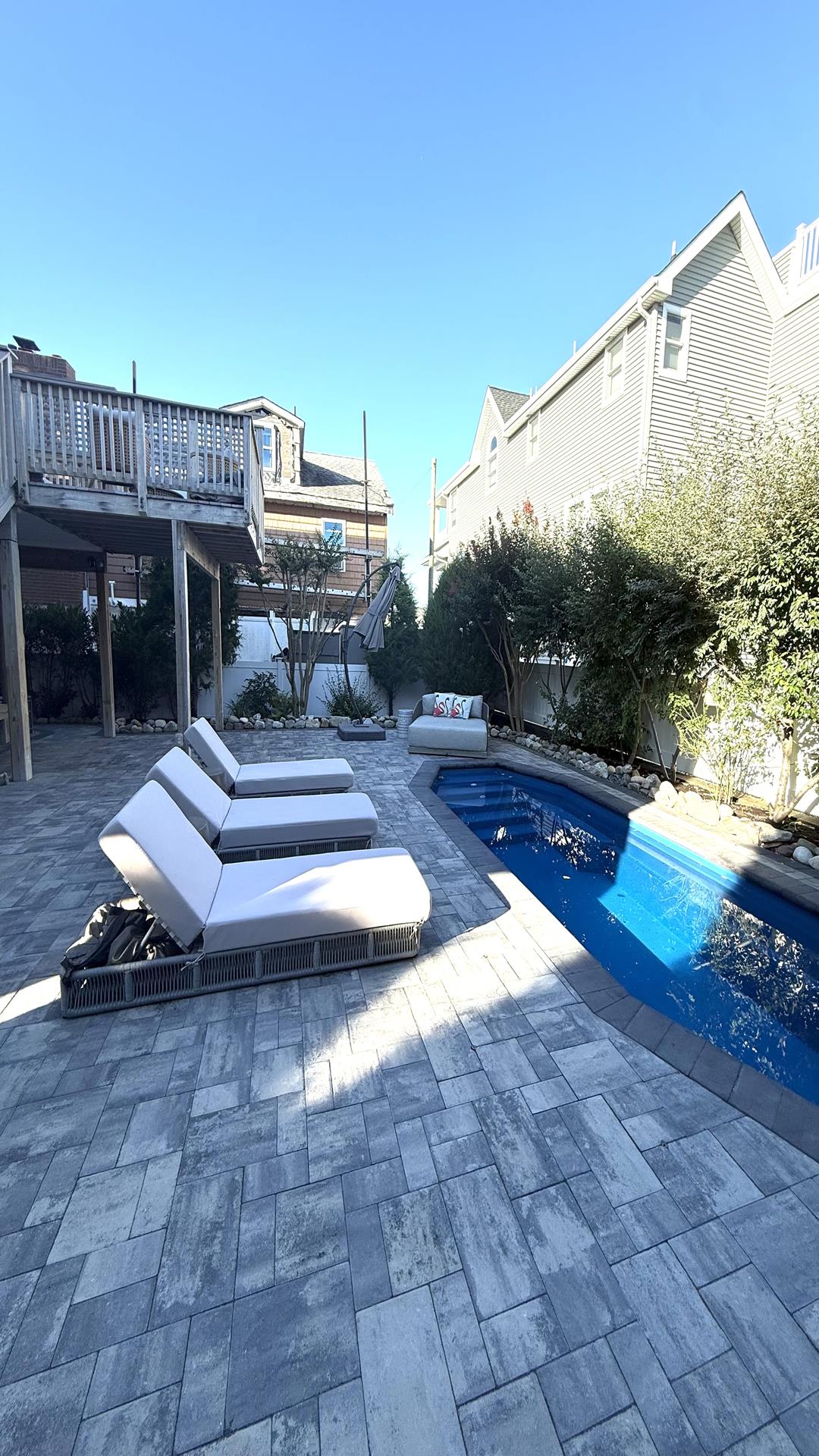 Designed for Vacation. Situated in the middle of Harvey Cedars, this 4 bedroom contemporary home features so much more than gorgeous design. Open floor plan allows for all those family moments to be shared. Large dining table, pantry, 2 bedrooms on the main level and two on the upper. 3 full baths. Large sunroom with pullout couch that leads out to a deck over looking the pool. Heated, in-ground pool with ample furniture and shade umbrellas. Outside shower, garage access.. private balcony off the primary suite. 6 beach badges provided, not guaranteed.