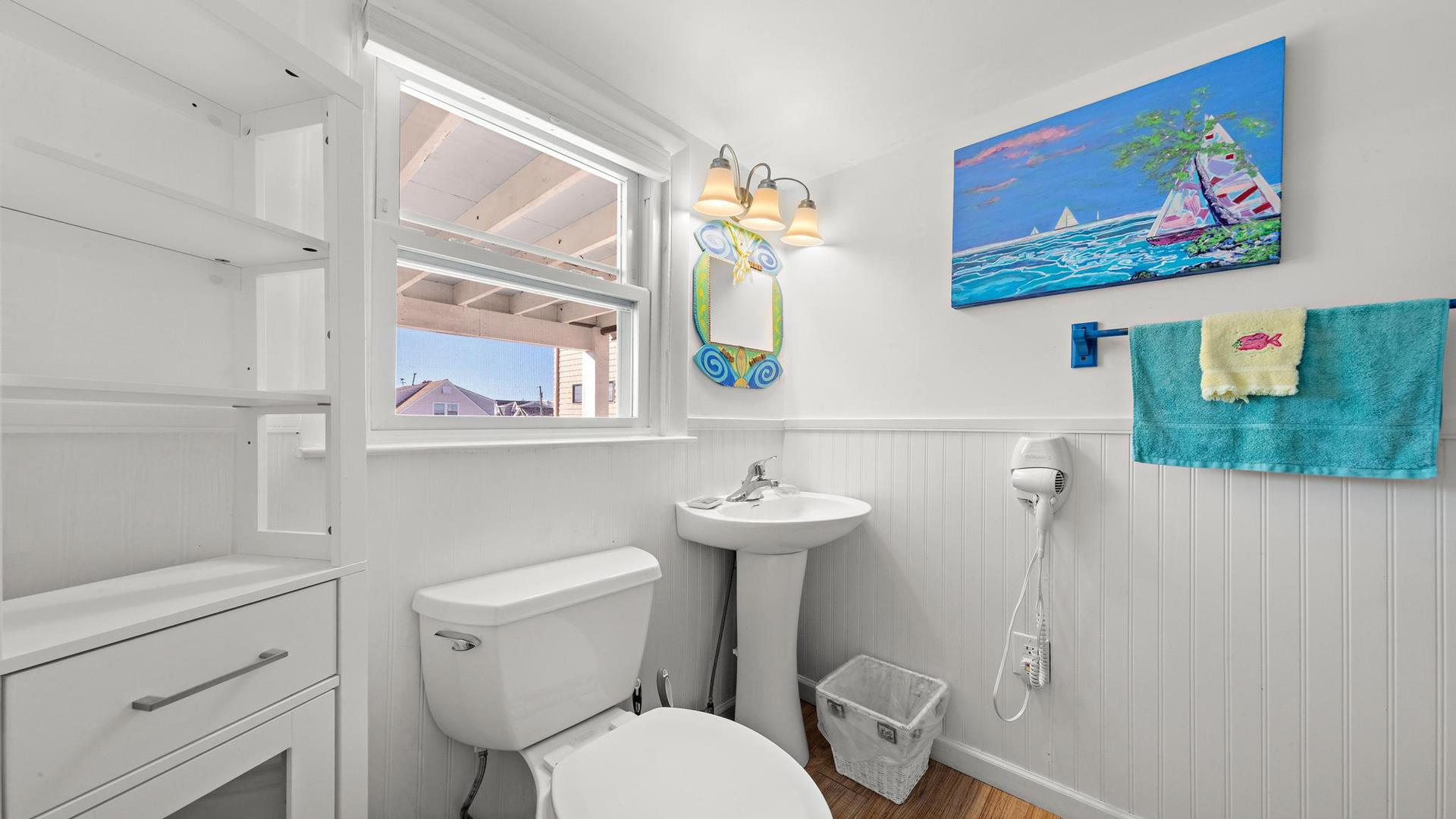 Bayblock in the desirable Brant Beach Yacht Club neighborhood, this 3 BR 1.5 unit is just steps to the bay and 2.5 blocks to the beach. Safe and quiet neighborhood for bike riding and dog walking. Well appointed, with an elevator, for a relaxing LBI vacation. 1 king bed, 1 queen bed and a bunk room (twin over queen). Covered deck in the back of the home is perfect for outside dining. The outside shower has a separate dressing area (shared by 1st & 2nd floor units). Large back yard (shared by 1st & 2nd floor) This unit is pet friendly for 1 dog under 40 lbs!