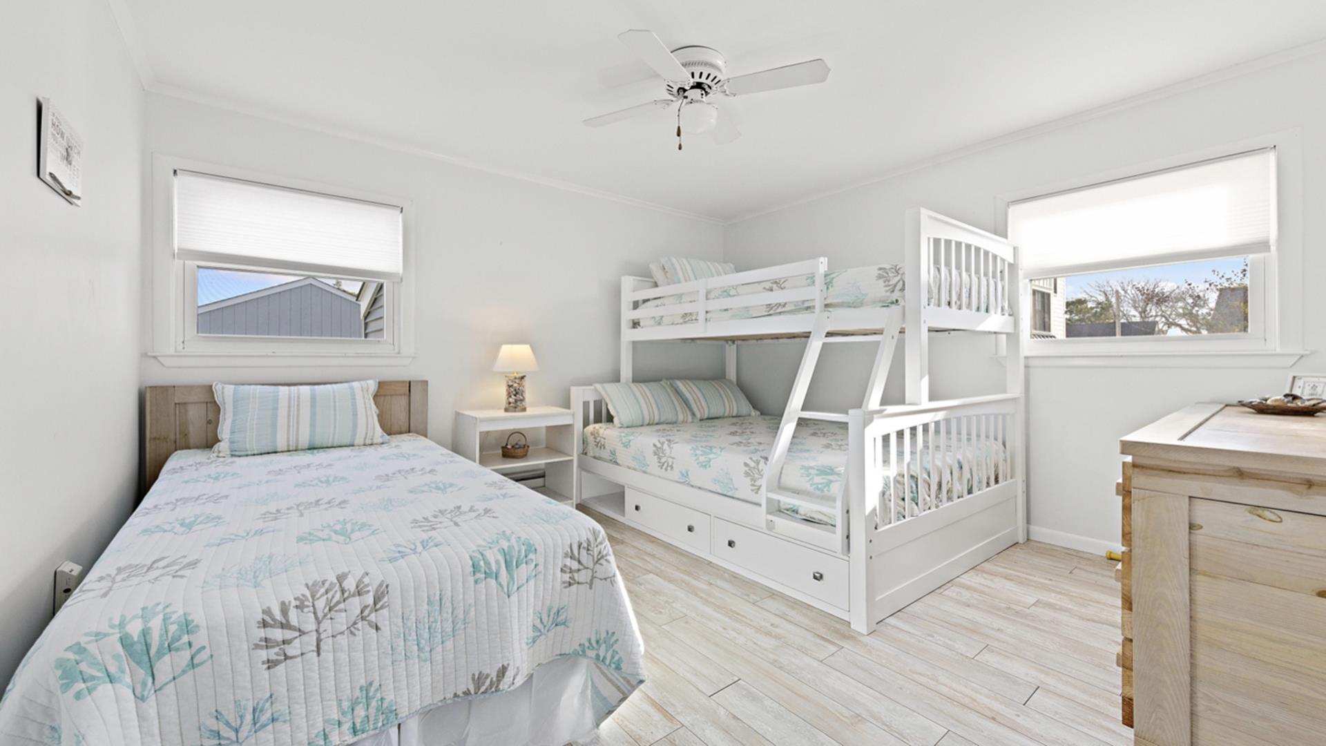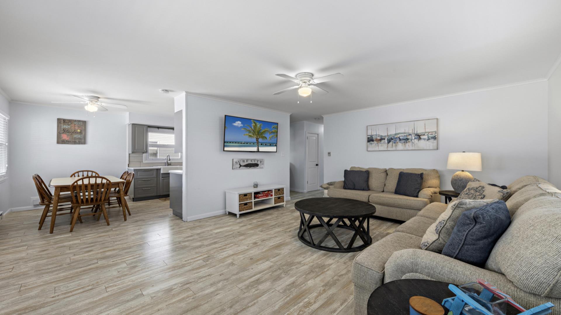 Beautifully renovated Surf City duplex featuring 3 bedrooms and 1 bath, with all the amenities you need for a relaxing stay. Just minutes from stunning beaches, local shops, dining, and all the activities Surf City has to offer. Start making lasting family memories on beautiful Long Beach Island. Please note that the 2nd floor is not available for rent. There is one parking space available for rent the first floor in front of the house. No parking on the side of the house. There is street parking available. The outside shower and yard are a shared space. No smoking in unit.