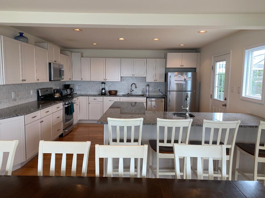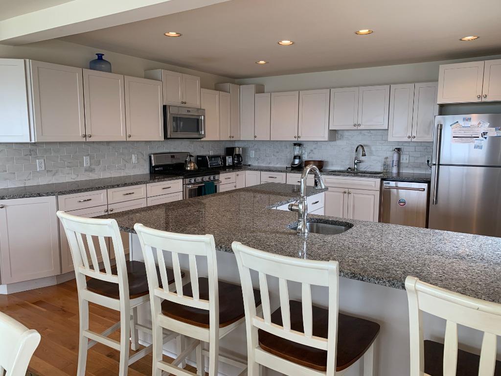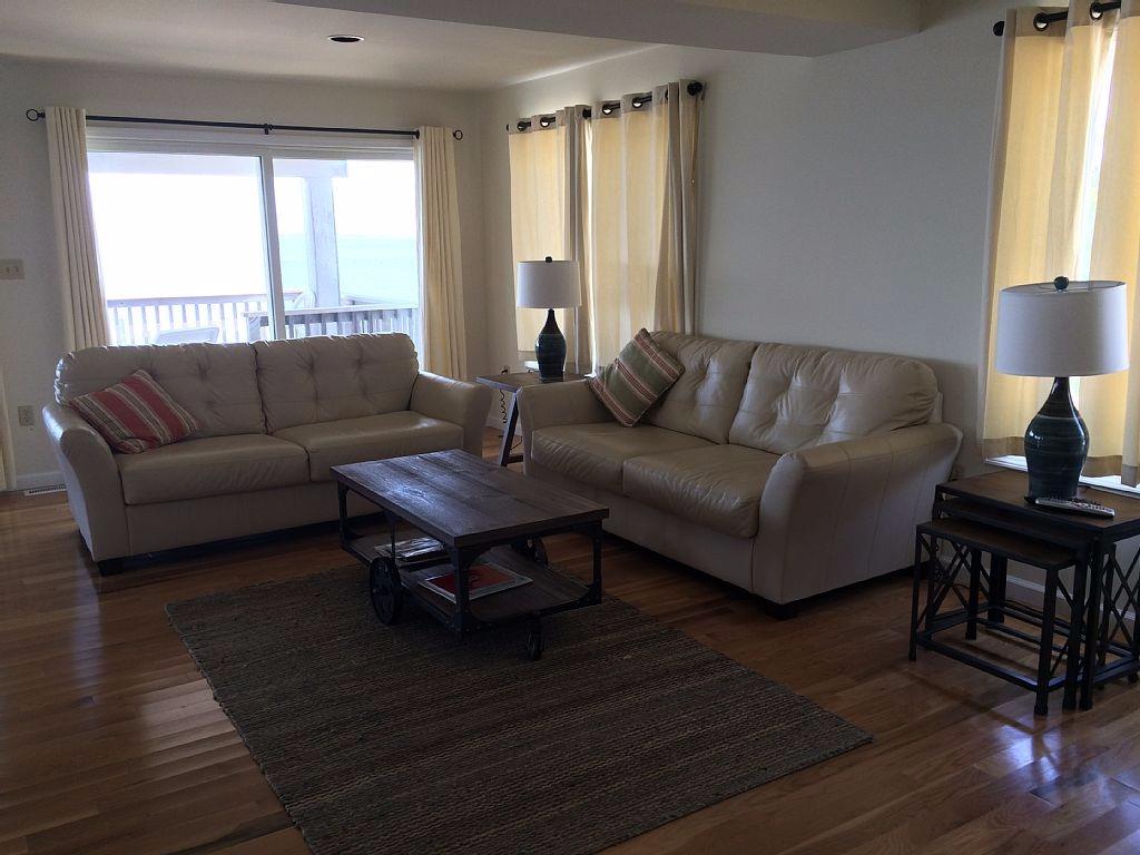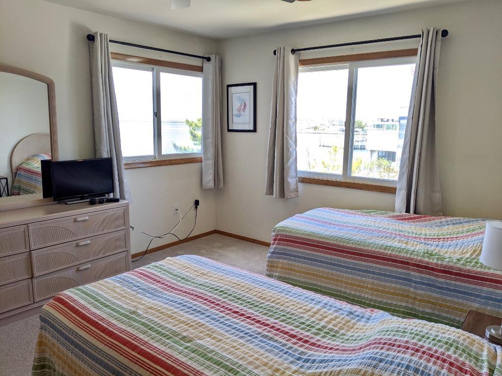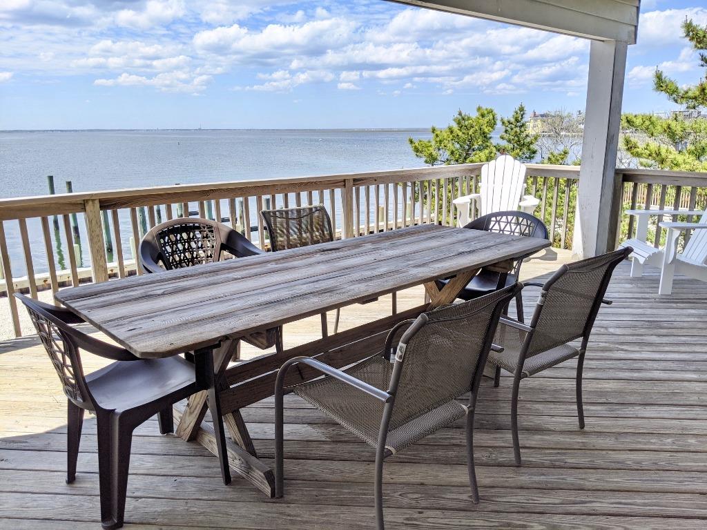 This extremely clean, lovingly maintained and updated bayfront contemporary home is situated at the end of a quiet lane and boasts stunning 180-degree unobstructed views of Barnegat Bay. The home features two master suites each with private bathrooms (one on the main level and another on the second level with its own private deck) and three additional bedrooms (each with two twin beds), one full hall bath and one-half bath. The main floor is beautifully furnished and features hardwood floors and direct access to the main deck which faces Barnegat Bay. A large, fully equipped and updated kitchen completes the main floor and is perfect for entertaining. Outside is a private heated pool, gas grill, patio furniture and an outdoor shower. A private deep-water dock with boat slip is located directly in front of the home for your recreational convenience. Jet skis are not permitted. The life-guarded ocean beach which is a short five-minute walk away with deeded beach access across the street. Tenant must sign owner\'s addendum. Absolutely no smoking or vaping permitted of any kind. Small dogs considered on a case-by-case basis (2 maximum) with a dog addendum and $400/dog non-refundable fee.