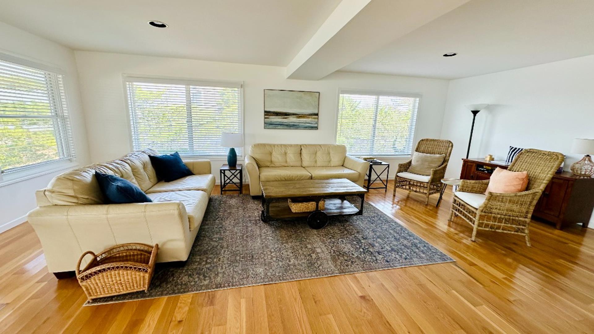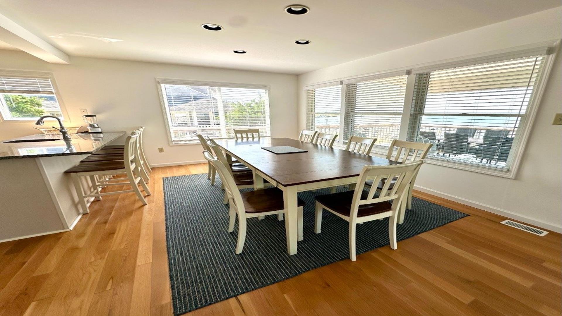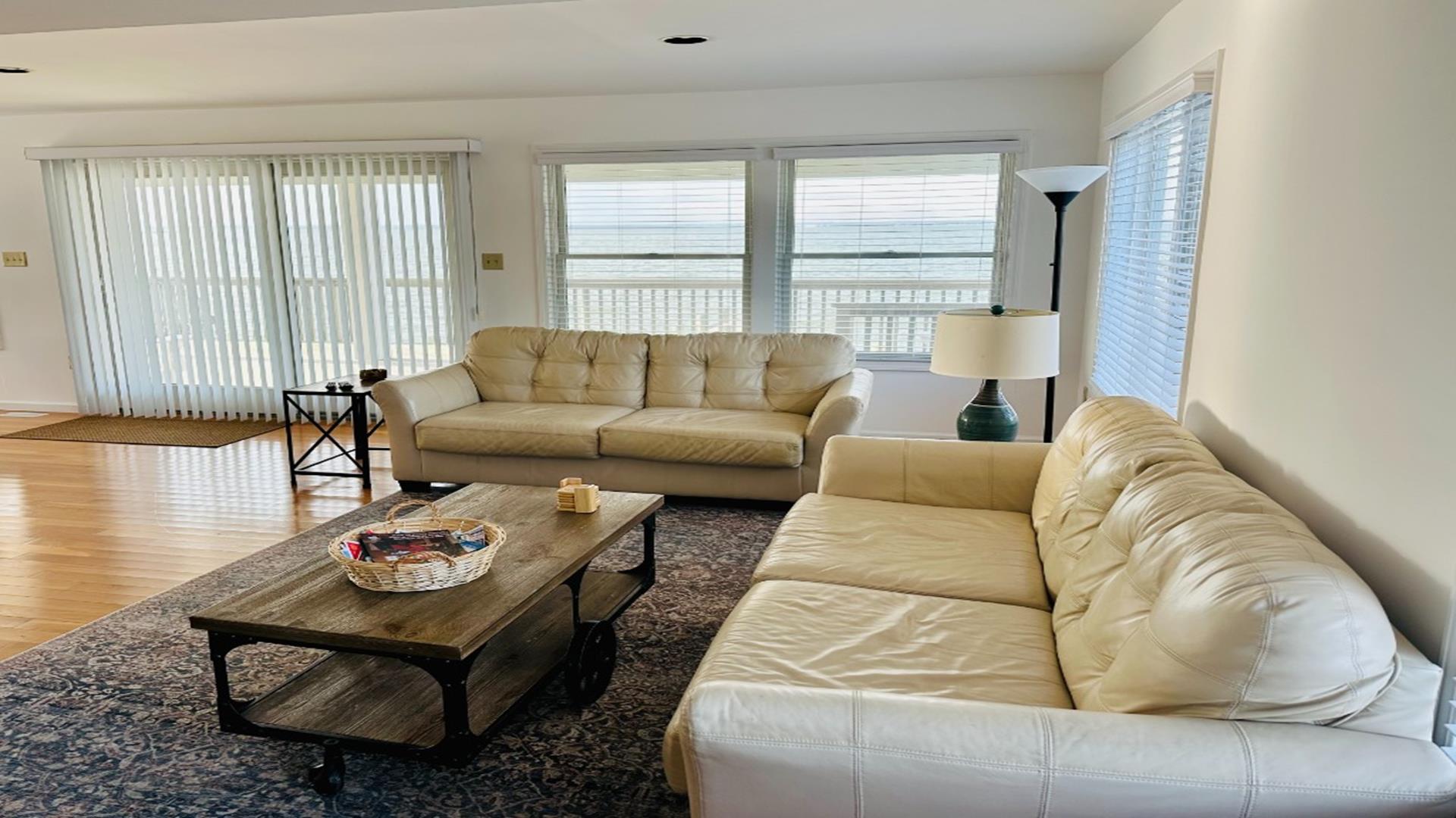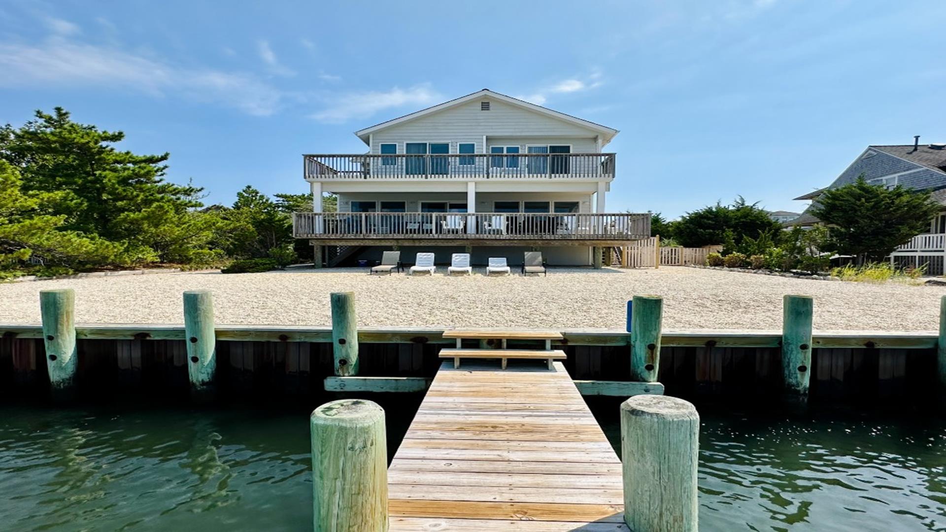 This extremely clean, lovingly maintained and updated bayfront contemporary home is situated at the end of a quiet lane and boasts stunning 180-degree unobstructed views of Barnegat Bay. The home features two master suites each with private bathrooms (one on the main level and another on the second level with its own private deck) and three additional bedrooms (each with two twin beds), one full hall bath and one-half bath. The main floor is beautifully furnished and features hardwood floors and direct access to the main deck which faces Barnegat Bay. A large, fully equipped and updated kitchen completes the main floor and is perfect for entertaining. Outside is a private heated pool, gas grill, patio furniture and an outdoor shower. A private deep-water dock with boat slip is located directly in front of the home for your recreational convenience. Jet skis are not permitted. The life-guarded ocean beach which is a short five-minute walk away with deeded beach access across the street. Tenant must sign owner\'s addendum. Absolutely no smoking or vaping permitted of any kind. Small dogs considered on a case-by-case basis (2 maximum) with a dog addendum and $400/dog non-refundable fee.