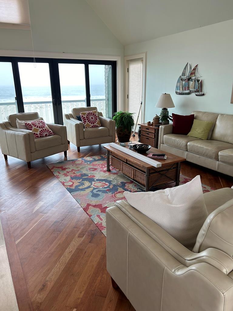 THIS UNDERSTATED OCEANFRONT RETREAT IS THE PERFECT PLACE TO RELAX AND UNWIND.5 BEDROOMS 3.5 BATHS(MAX OCCUPANCY 10). 5th BEDROOM IS OPEN SLEEP LOFT WITH TRUNDLE. BEAUTIFUL NON REVERSED LIVING HOME OPEN FLOOR PLAN FEATURES GRANITE KITCHEN, HARDWOOD FLOORS DINING ROOM LOOKING OVER THE OCEAN. BEAUTIFUL DECKS ALL AROUND FRONT OF HOME LOOKING OVER THE OCEAN. LARGE HEATED INGROUND POOL & SPA. POOL AREA IS FENCED IN, VERY PRIVATE, COME RELAX BY THE POOL WITH YOUR FAVORITE BOOK.NON-REVERSE, .GREAT RATES & NON-NEGOTIABLE. TENANT MUST SIGN ADDENDUM. PLEASE REFER TO PROPERTY 92870 WHEN INQUIRING.NO PETS NO SMOKING.BEACH BADGES PROVIDED(6 regular & 2 senior) & TENANT TO REPLACE IF LOST. 3:00 PM Check-In, 10:00 AM Check-Out